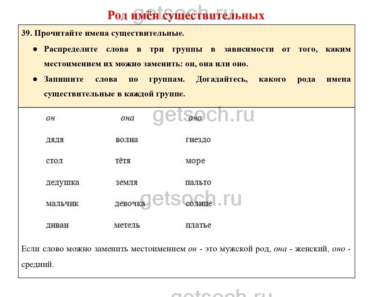 Запишите слова по группам. Догадайтесь, какого рода имена существительные в каждой группе.