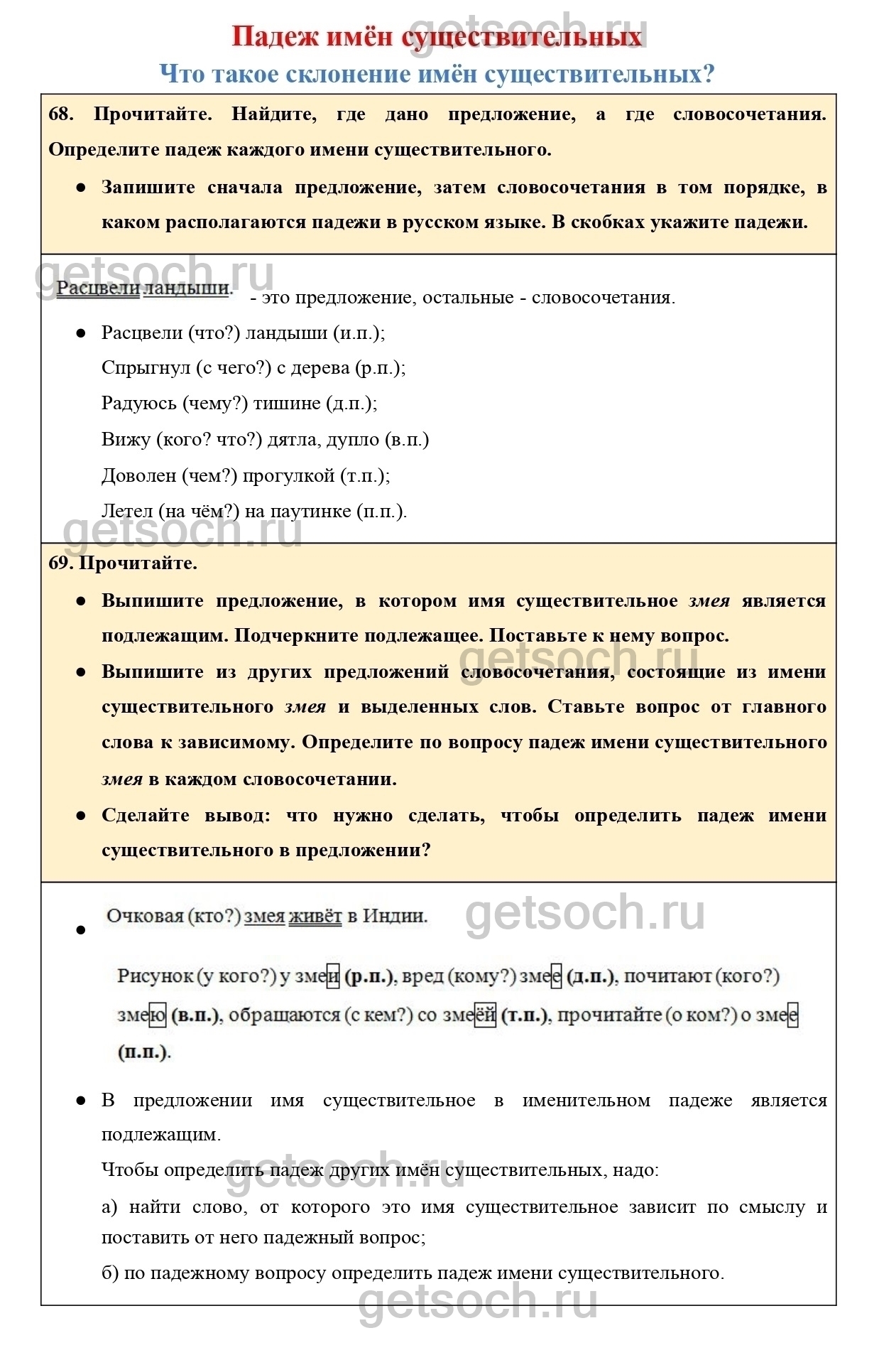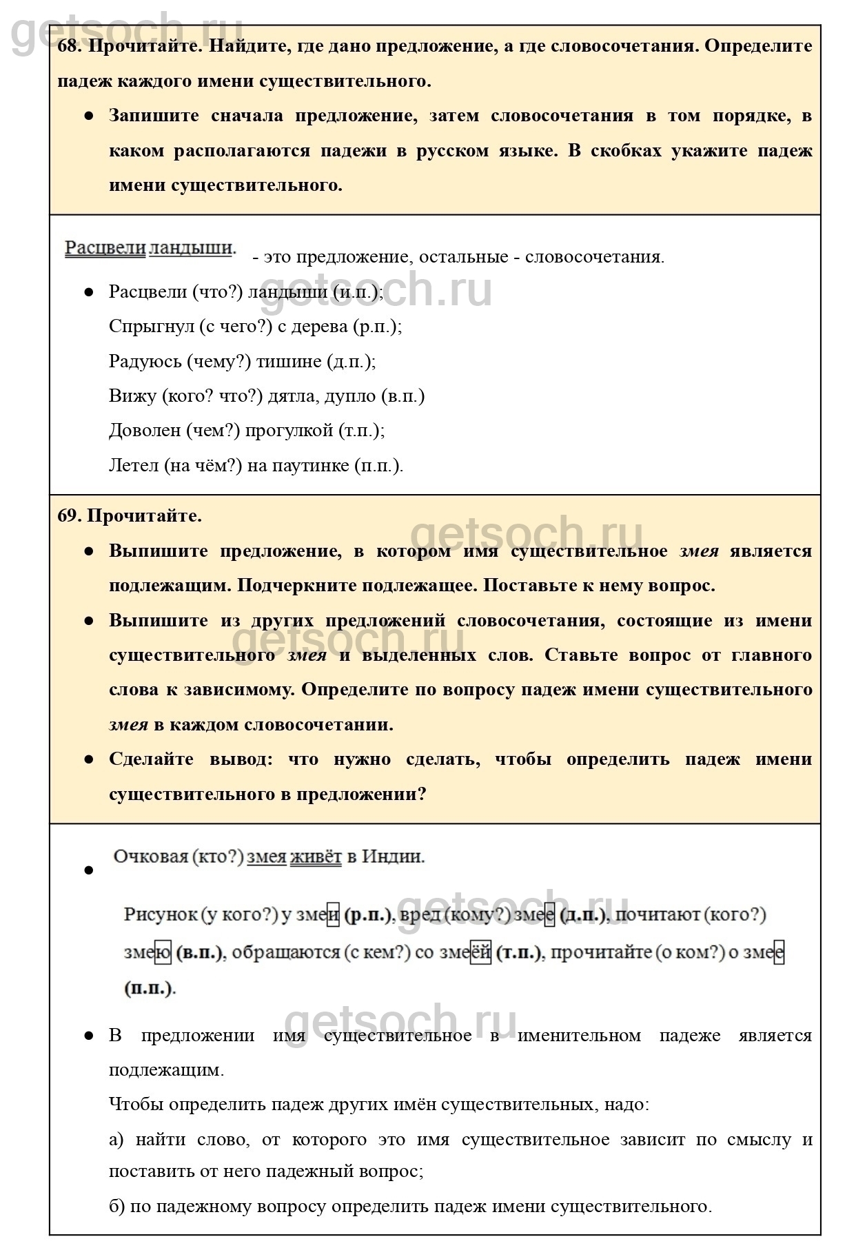 68. Прочитайте. Найдите, где дано предложение, а где словосочетания. Определите падеж каждого имени существительного.