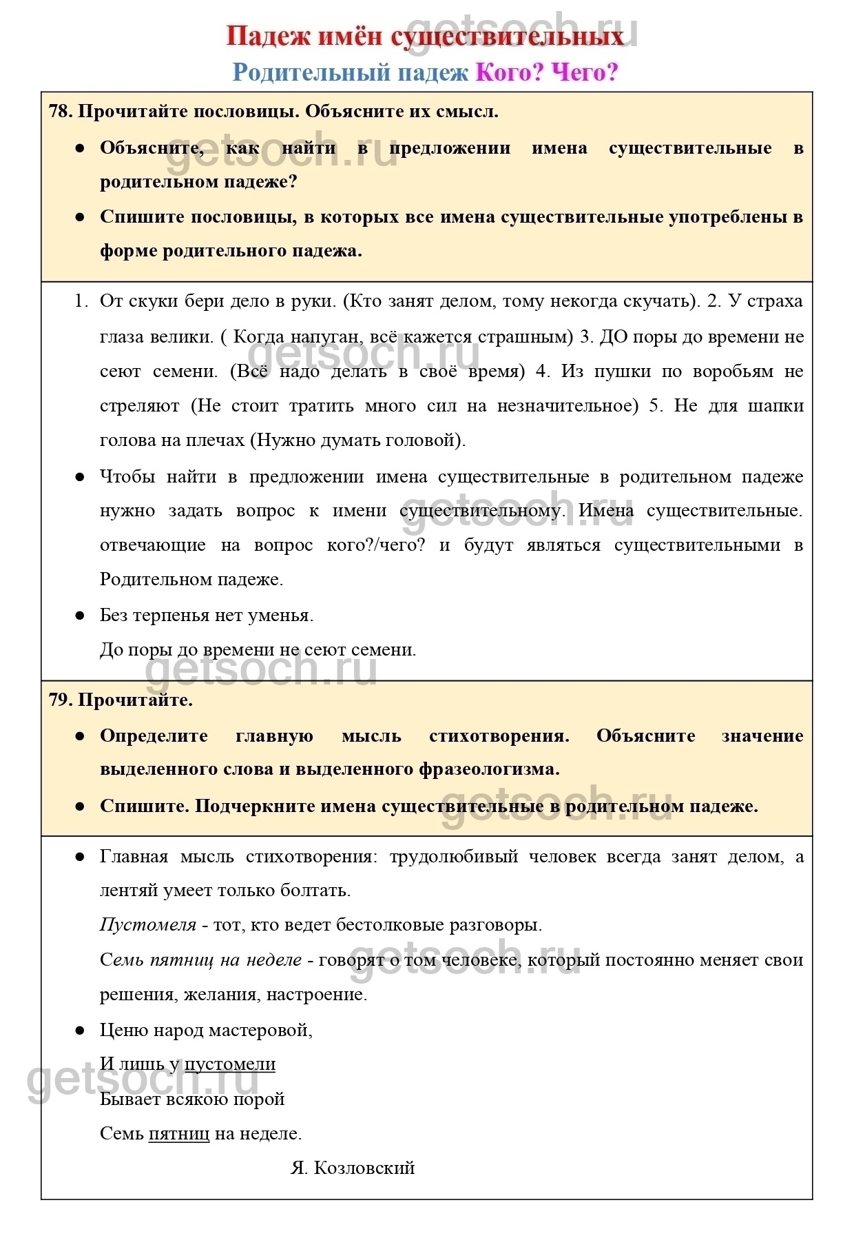 Спишите пословицы, в которых все имена существительные употреблены в форме родительного падежа.