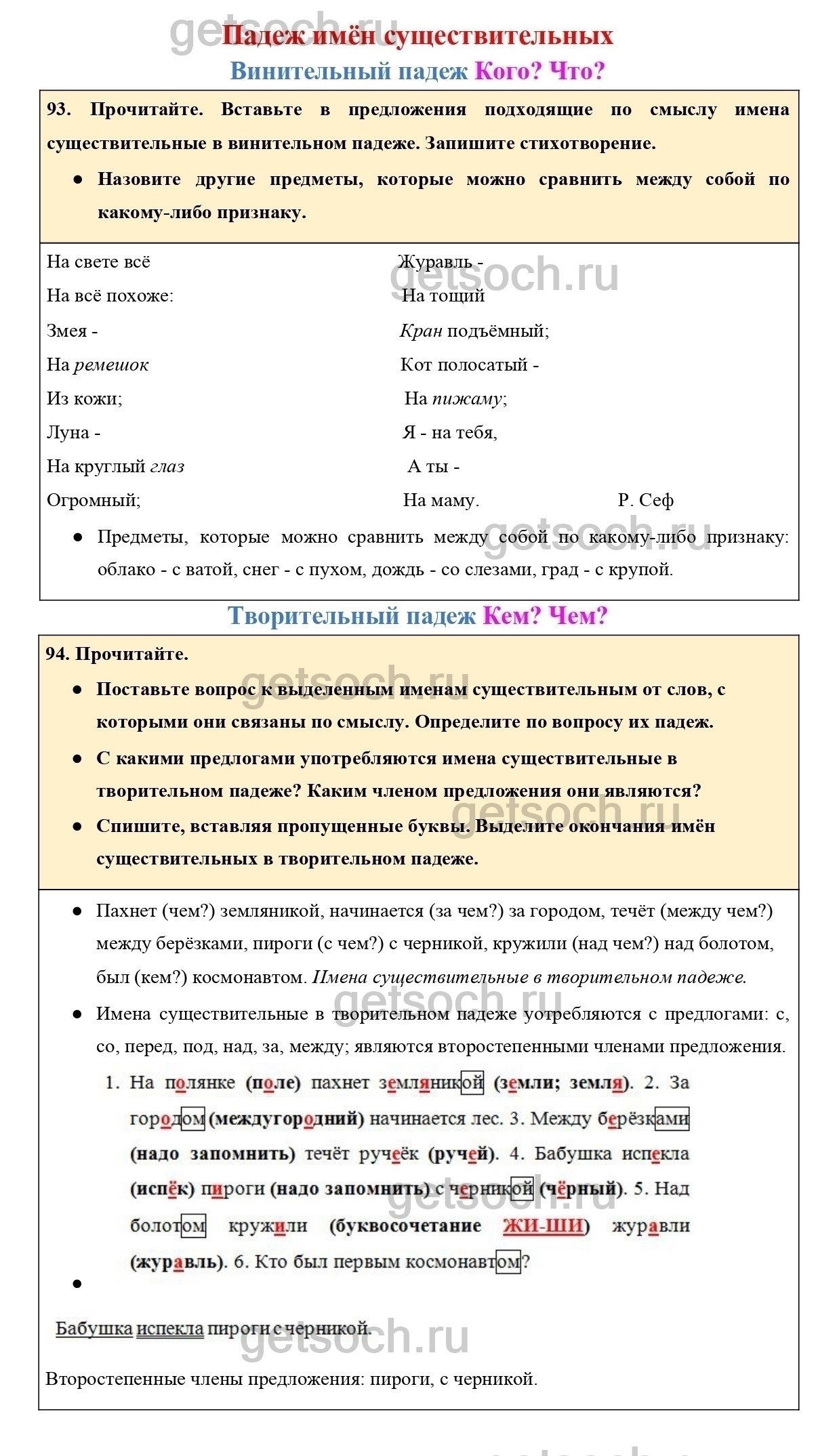 93. Прочитайте. Вставьте в предложения подходящие по смыслу имена существительные в винительном падеже. Запишите стихотворение.