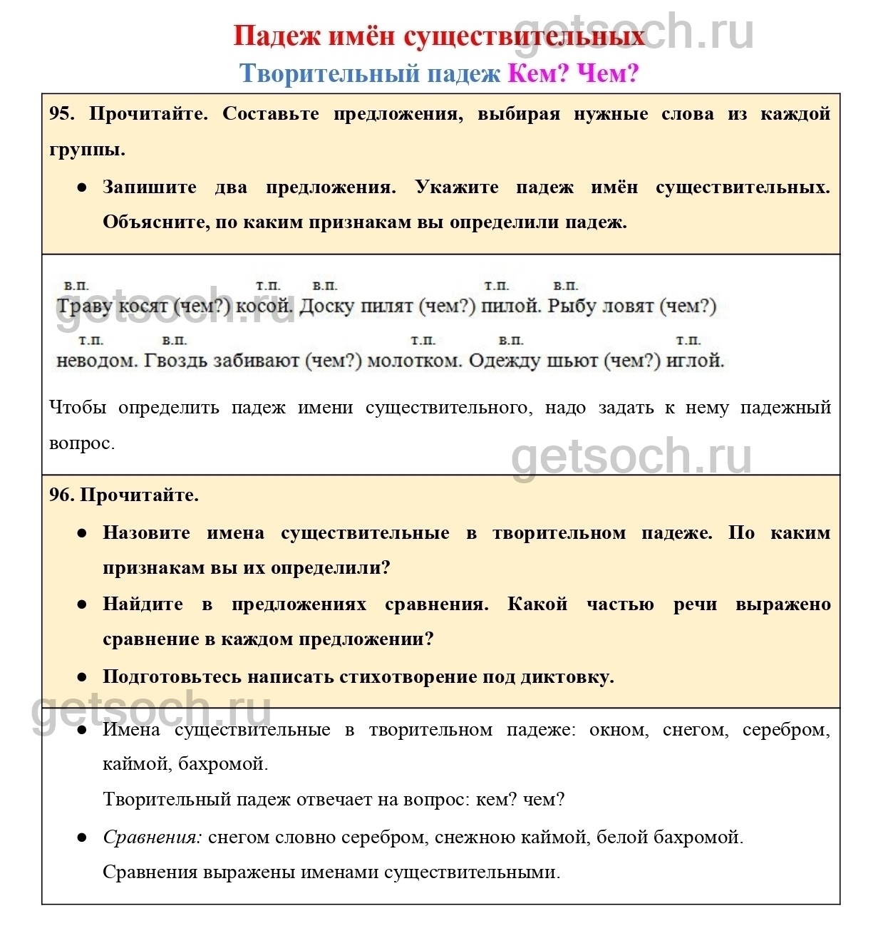 95. Прочитайте. Составьте предложения, выбирая нужные слова из каждой группы.