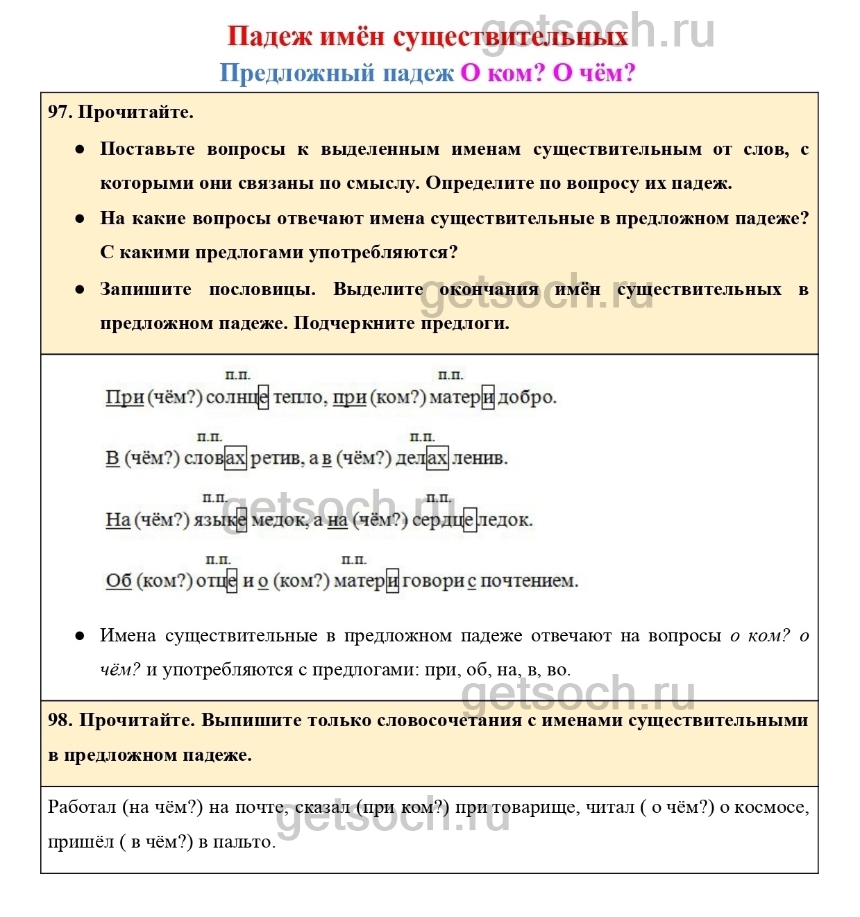 98. Прочитайте. Выпишите только словосочетания с именами существительными в предложном падеже.