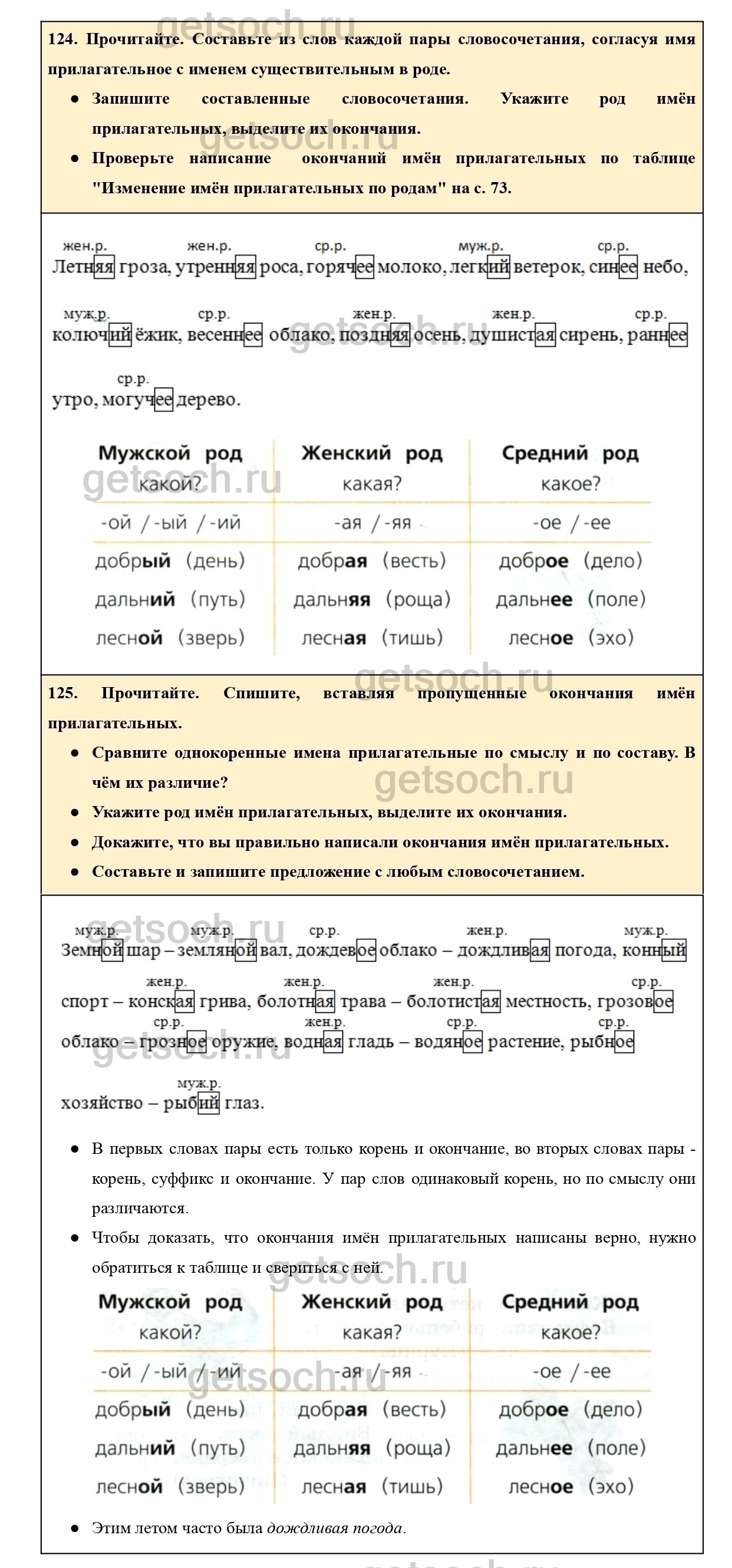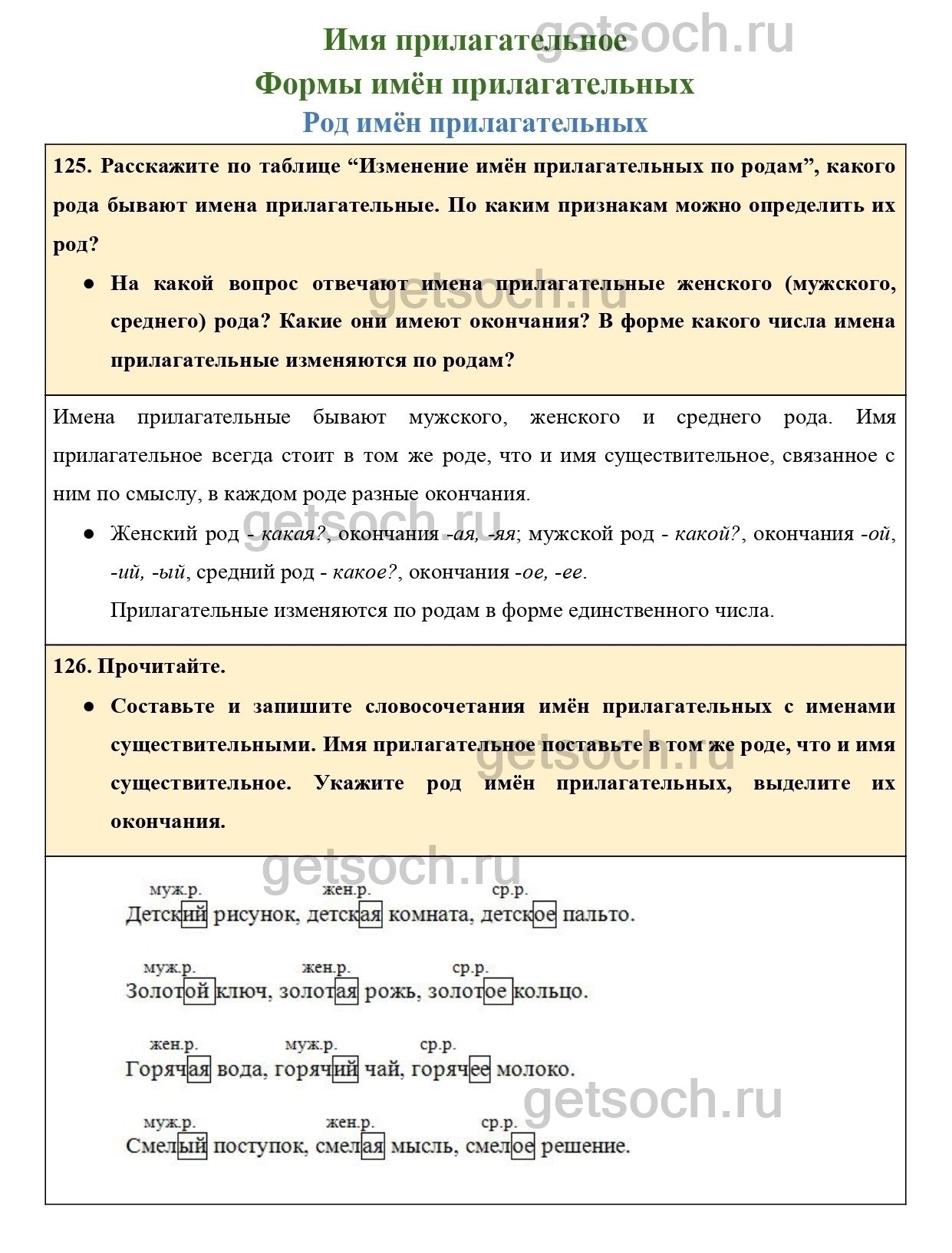 125. Расскажите по таблице “Изменение имён прилагательных по родам”, какого рода бывают имена прилагательные. По каким признакам можно определить их род?