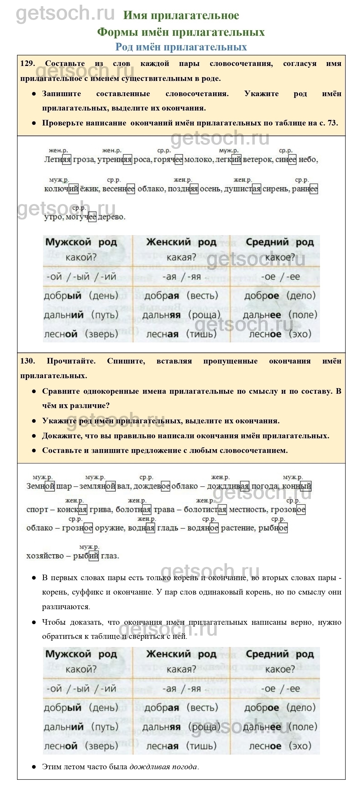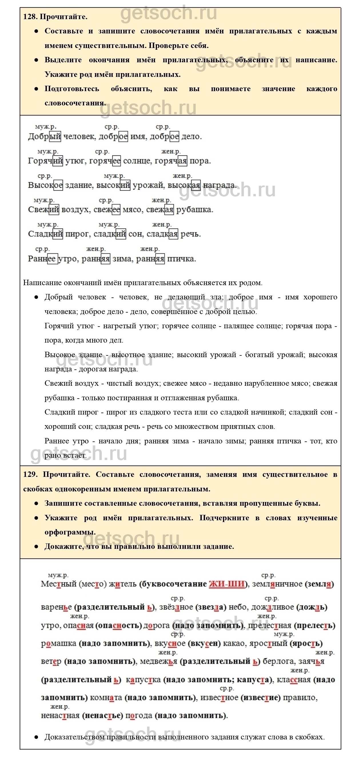 129. Составьте из слов каждой пары словосочетания, согласуя имя прилагательное с именем существительным в роде.