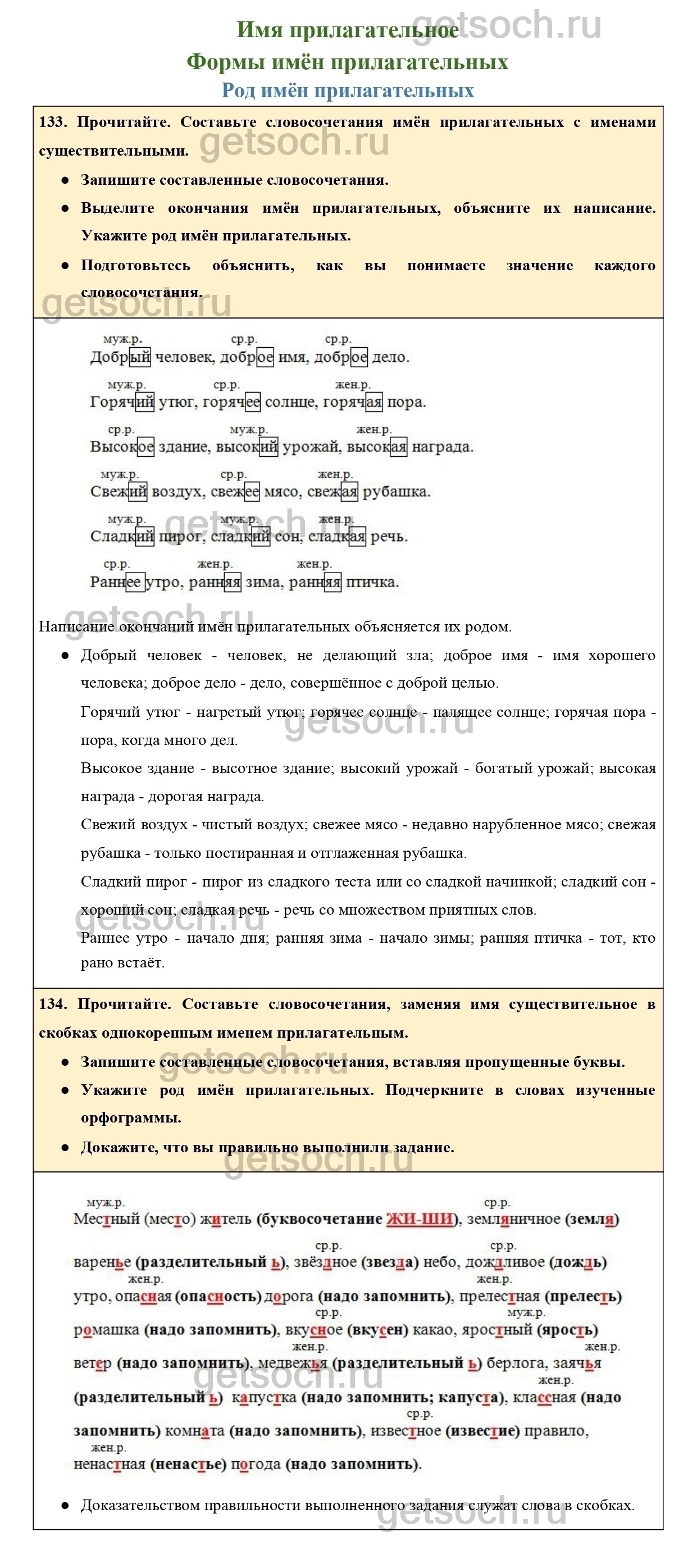 134. Прочитайте. Составьте словосочетания, заменяя имя существительное в скобках однокоренным именем прилагательным.