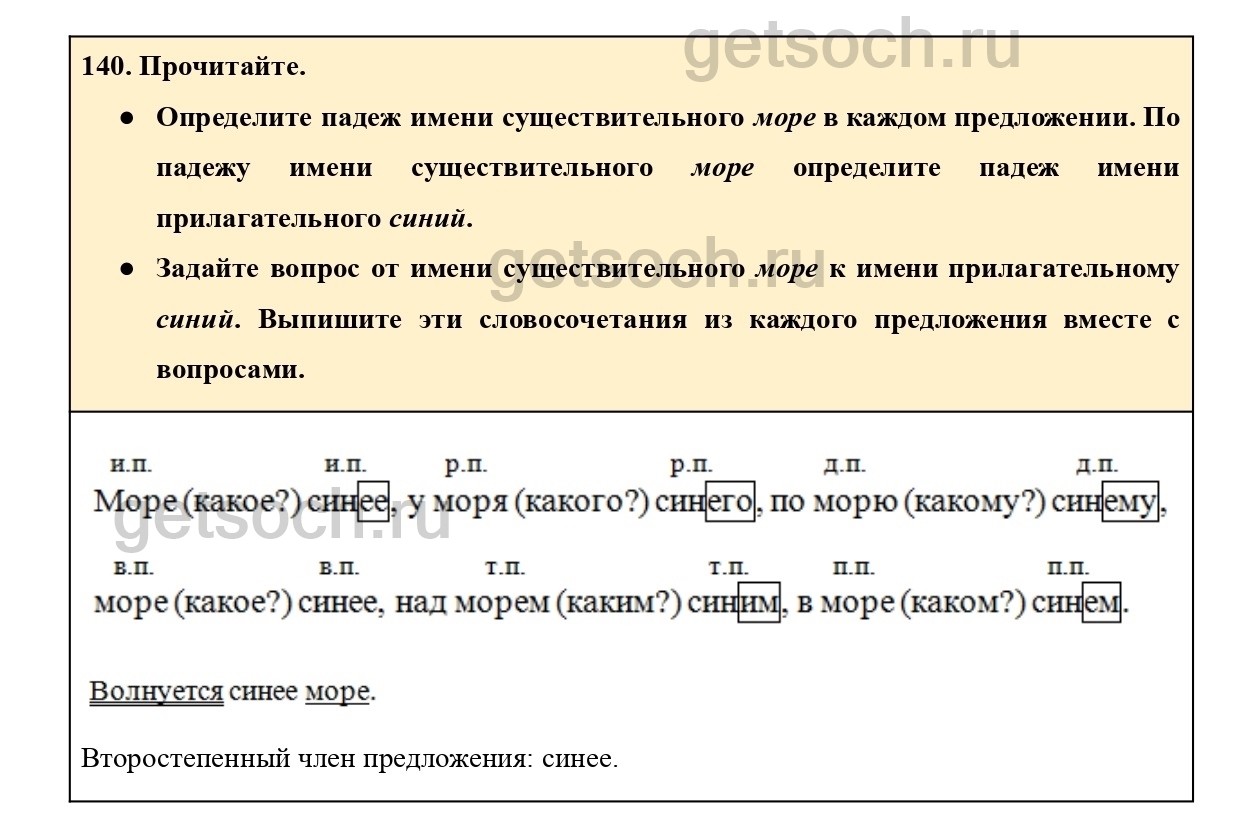 Определите падеж имени существительного море в каждом предложении. По падежу имени существительного море определите падеж имени прилагательного синий.