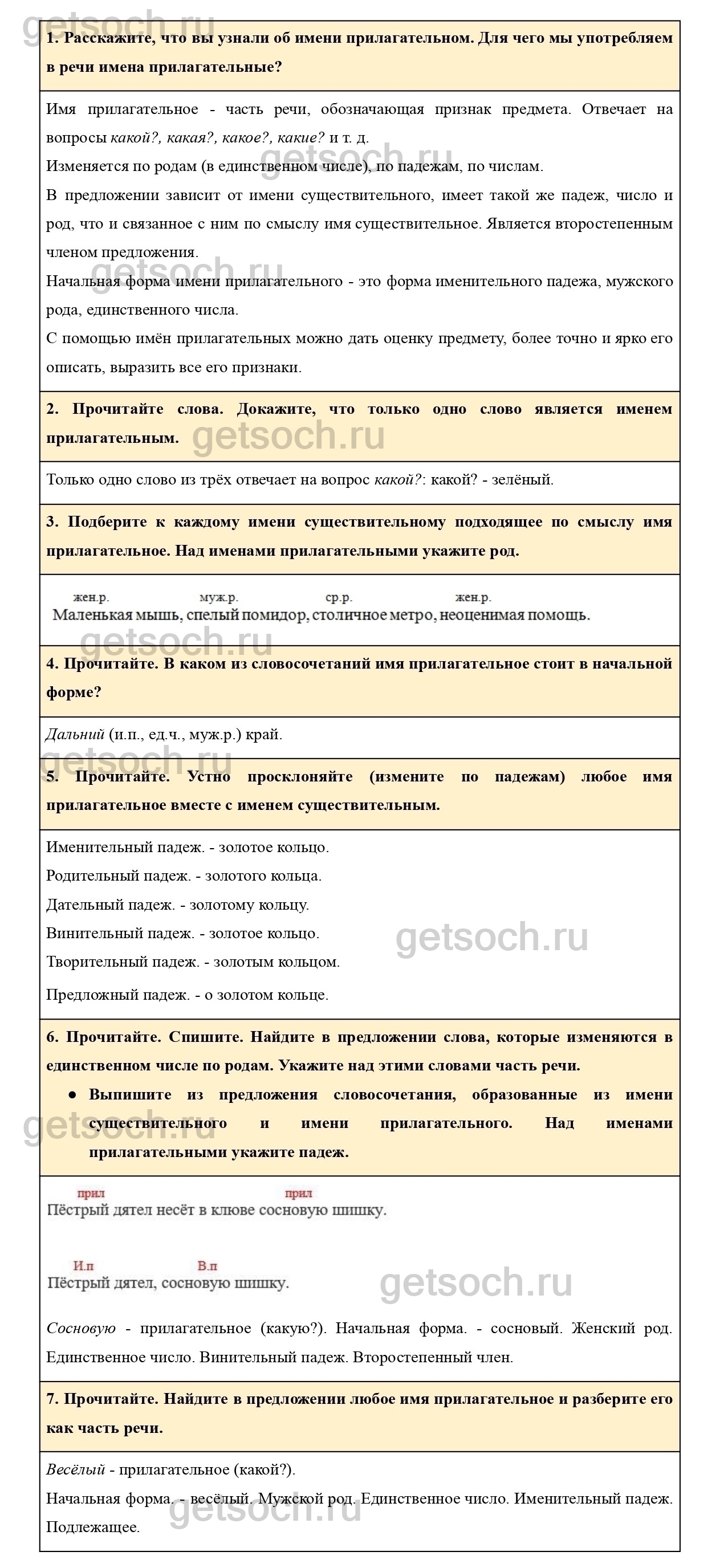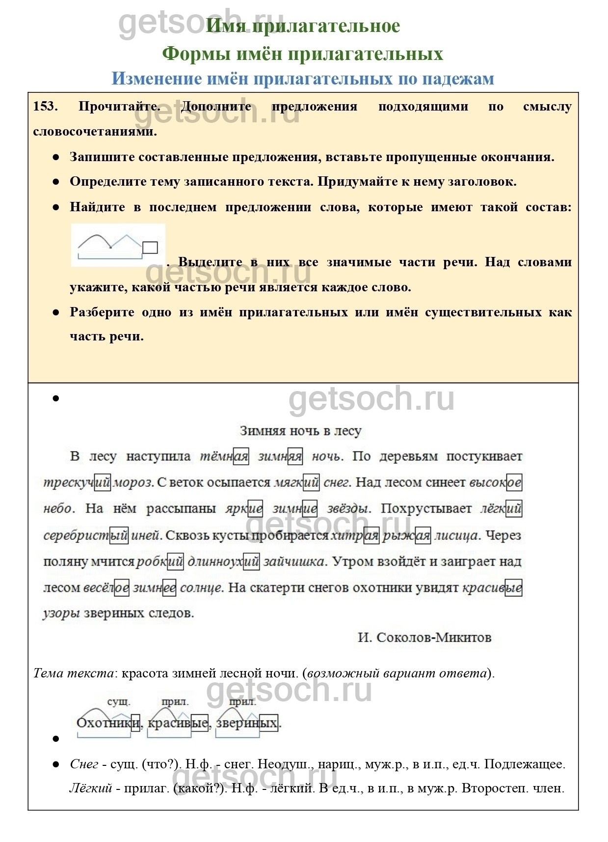 Разберите одно из имён прилагательных или имён существительных как часть речи.