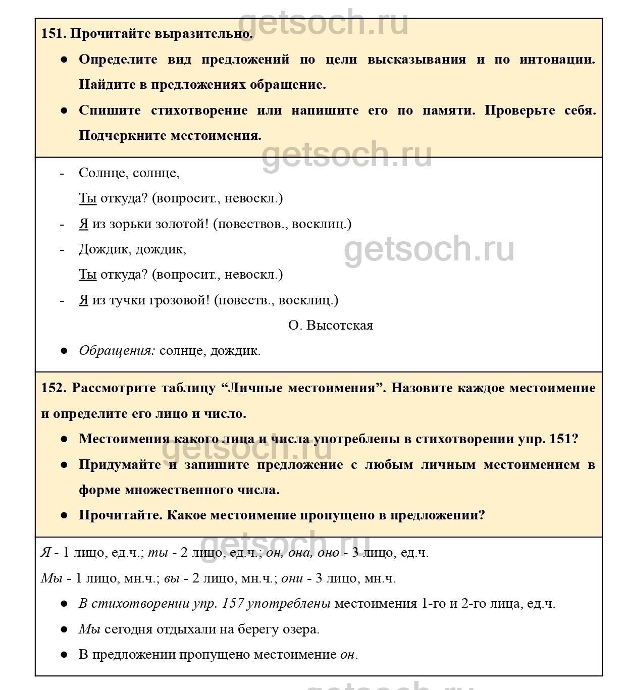 Местоимения какого лица и числа употреблены в стихотворении упр. 151?