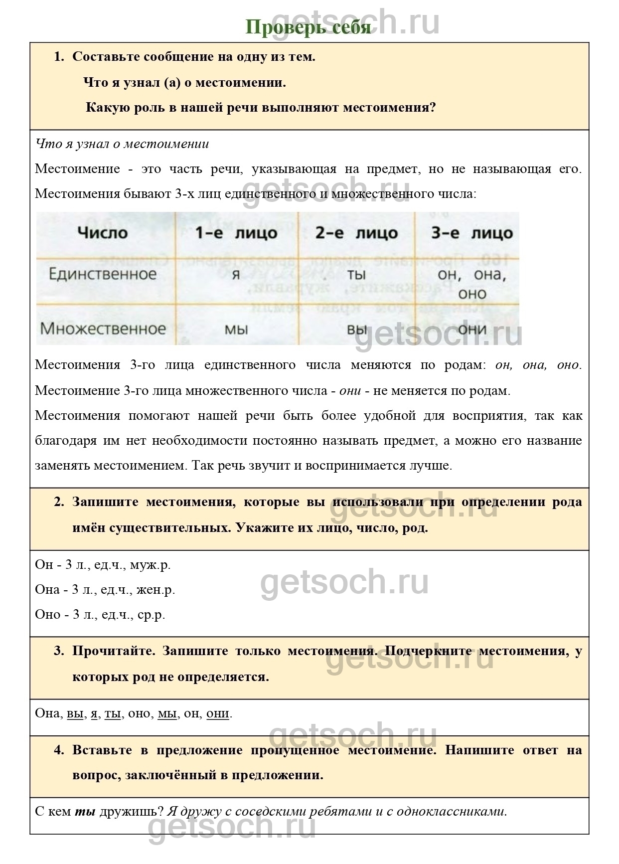 2. Запишите местоимения, которые вы использовали при определении рода имён существительных. Укажите их лицо, число, род.