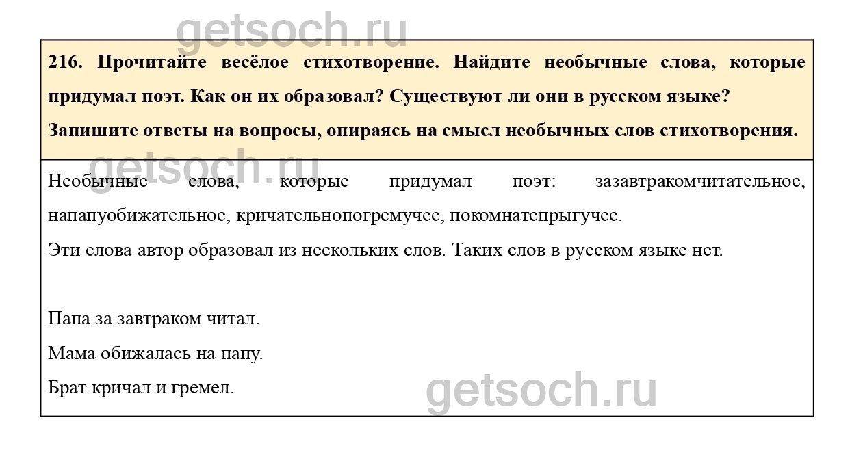 Упражнение 216- ГДЗ по Русскому языку 3 класс Учебник Климанова, Бабушкина. Часть 1