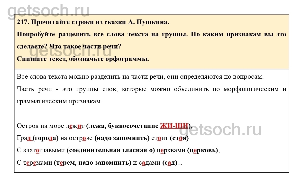 Упражнение 217- ГДЗ по Русскому языку 3 класс Учебник Климанова, Бабушкина. Часть 1
