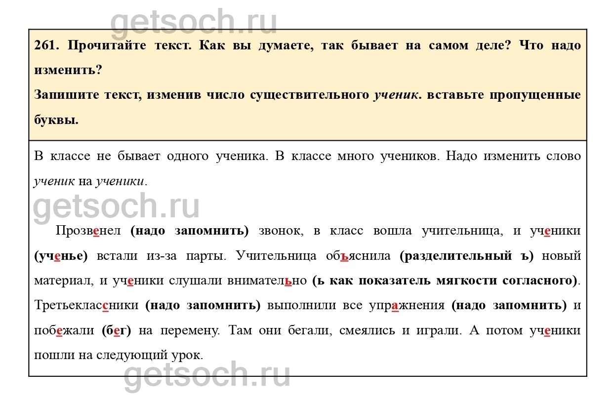 Упражнение 261- ГДЗ по Русскому языку 3 класс Учебник Климанова, Бабушкина. Часть 1
