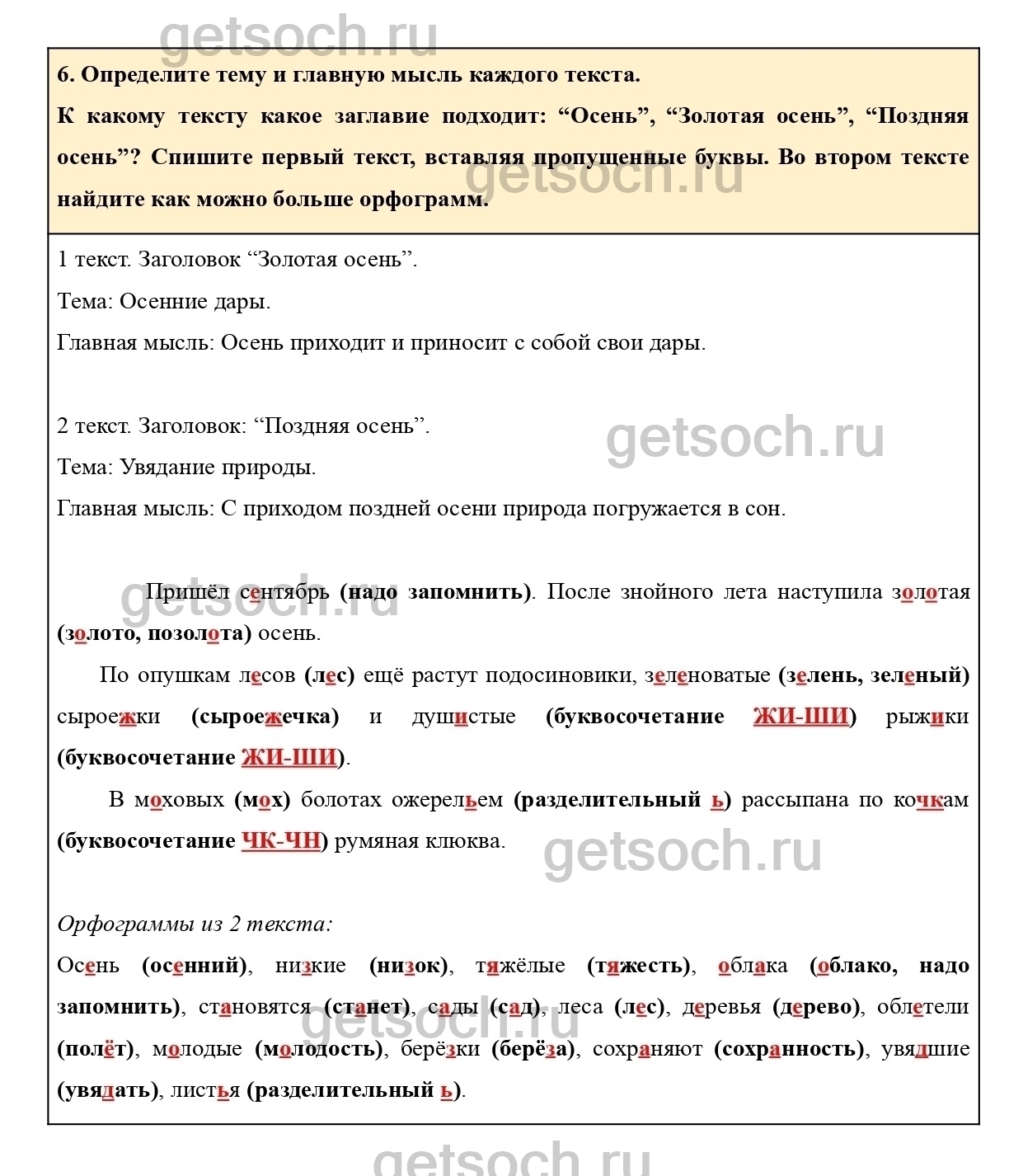 Упражнение 6- ГДЗ по Русскому языку 3 класс Учебник Климанова, Бабушкина. Часть 1