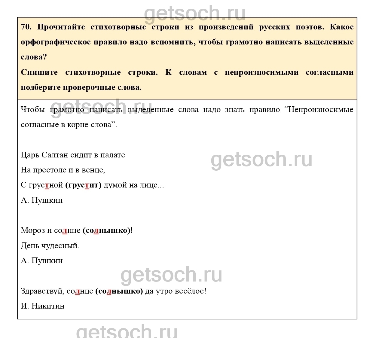 Упражнение 70- ГДЗ по Русскому языку 3 класс Учебник Климанова, Бабушкина. Часть 1