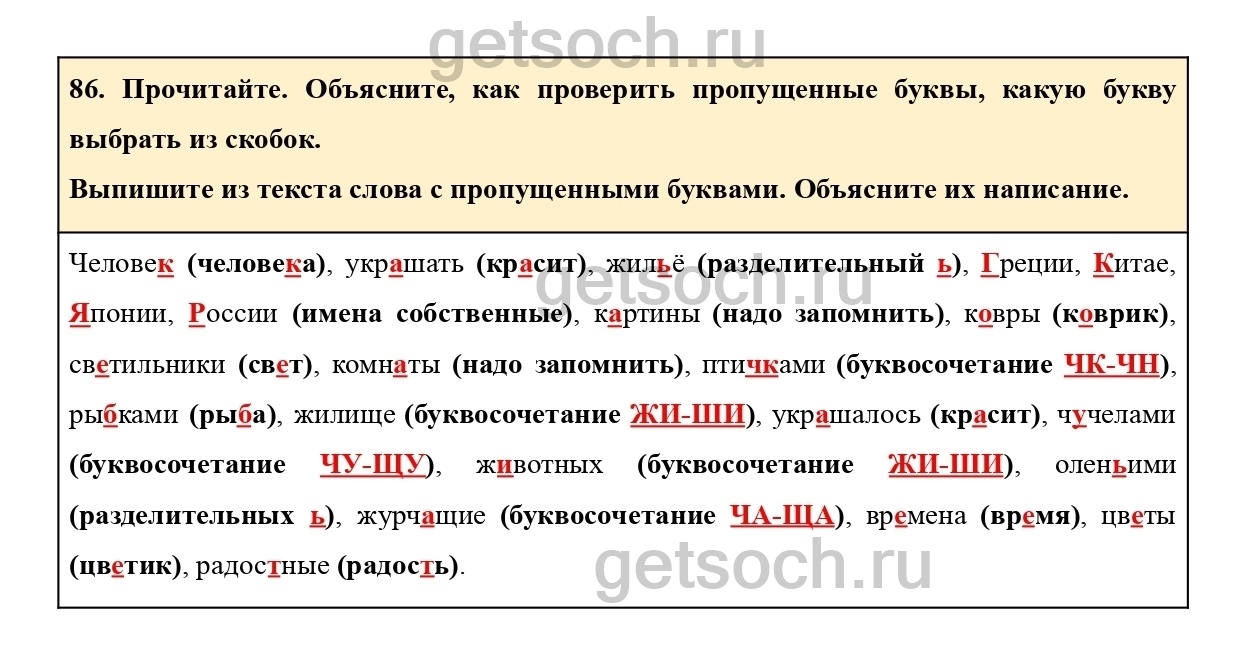 Упражнение 86- ГДЗ по Русскому языку 3 класс Учебник Климанова, Бабушкина. Часть 1