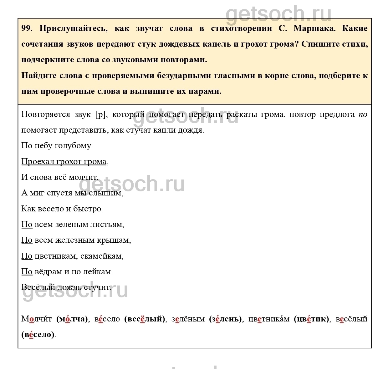 Упражнение 99- ГДЗ по Русскому языку 3 класс Учебник Климанова, Бабушкина. Часть 1