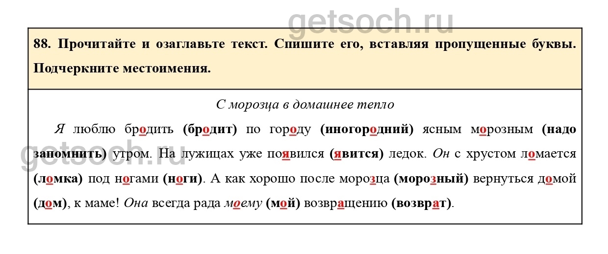 Упражнение 88- ГДЗ по Русскому языку 3 класс Учебник Климанова, Бабушкина. Часть 2