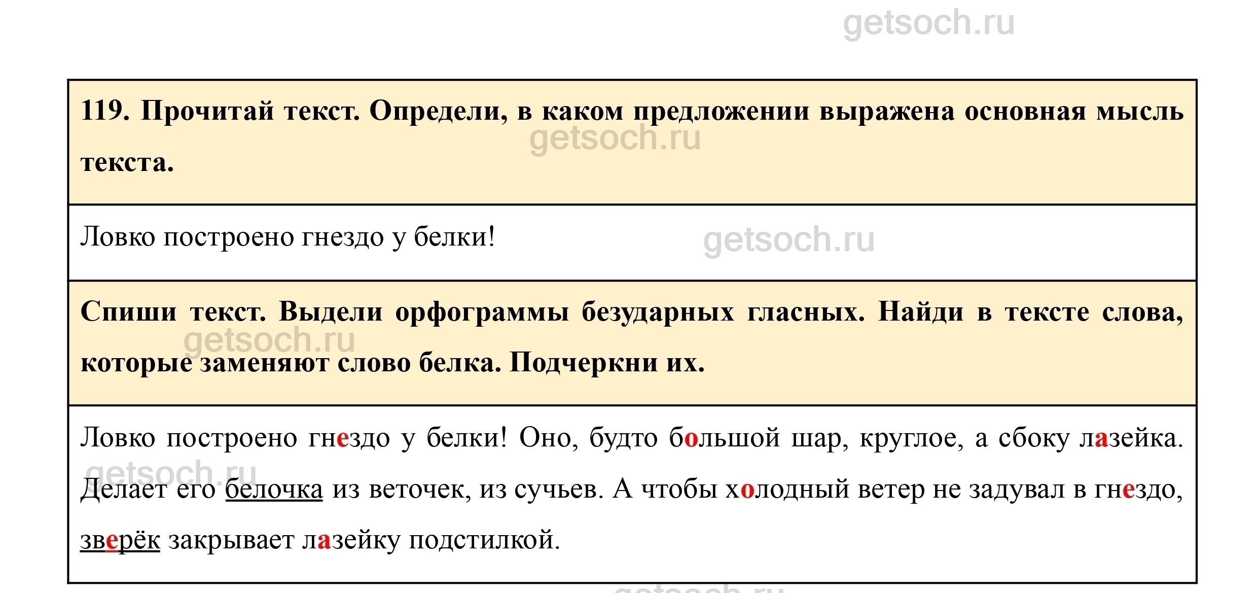 Спиши текст. Выдели орфограммы безударных гласных. Найди в тексте слова, которые заменяют слово белка. Подчеркни их.
