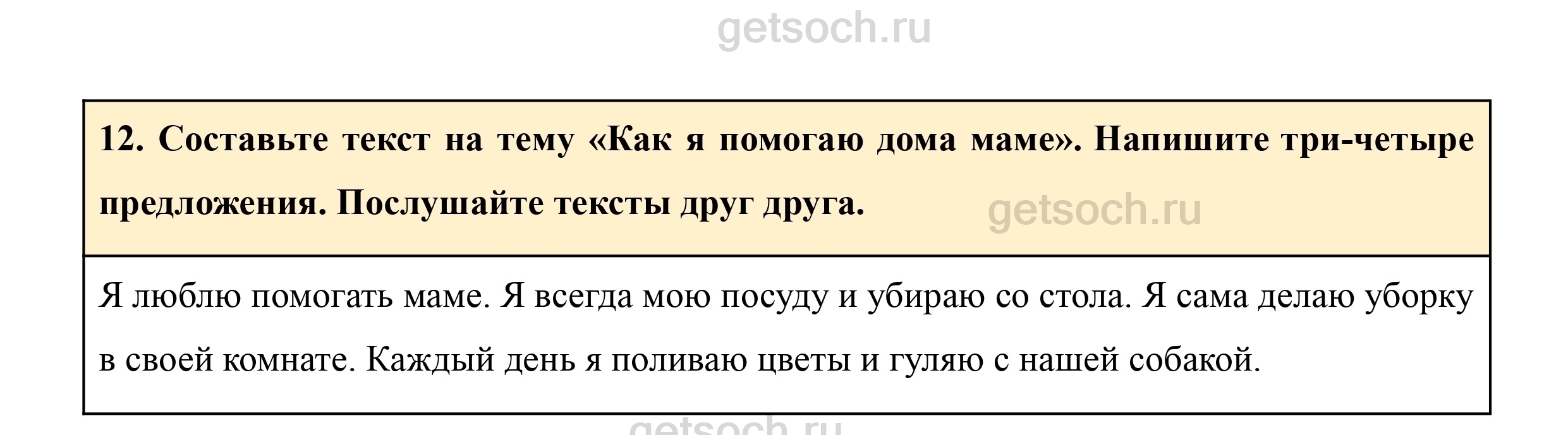 12. Составьте текст на тему «Как я помогаю дома маме». Напишите три-четыре предложения. Послушайте тексты друг друга.