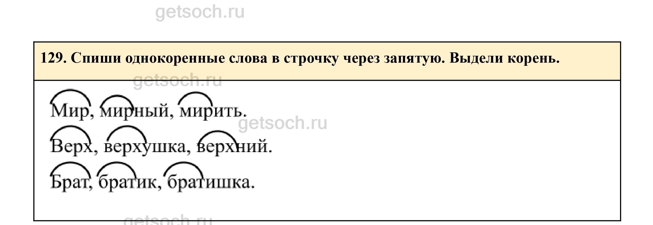 129. Спиши однокоренные слова в строчку через запятую. Выдели корень.