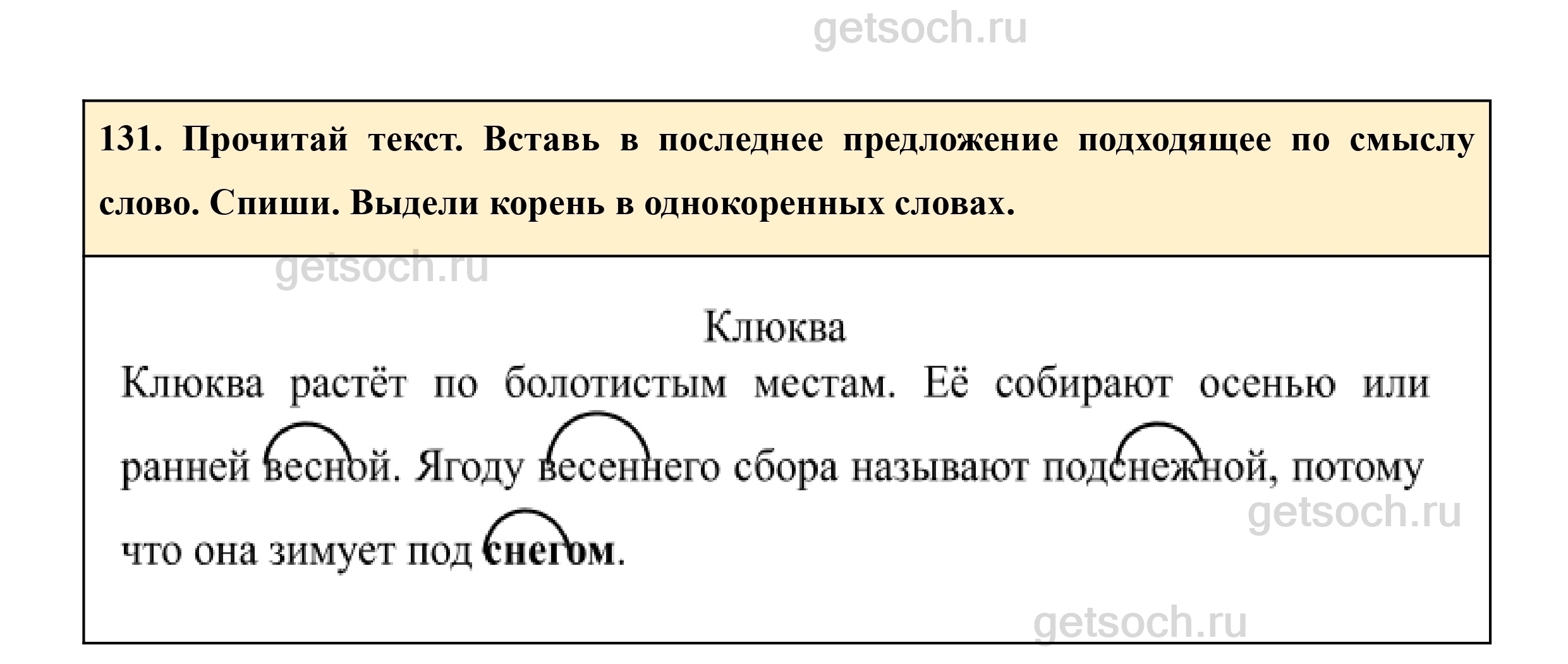 131. Прочитай текст. Вставь в последнее предложение подходящее по смыслу слово. Спиши. Выдели корень в однокоренных словах.