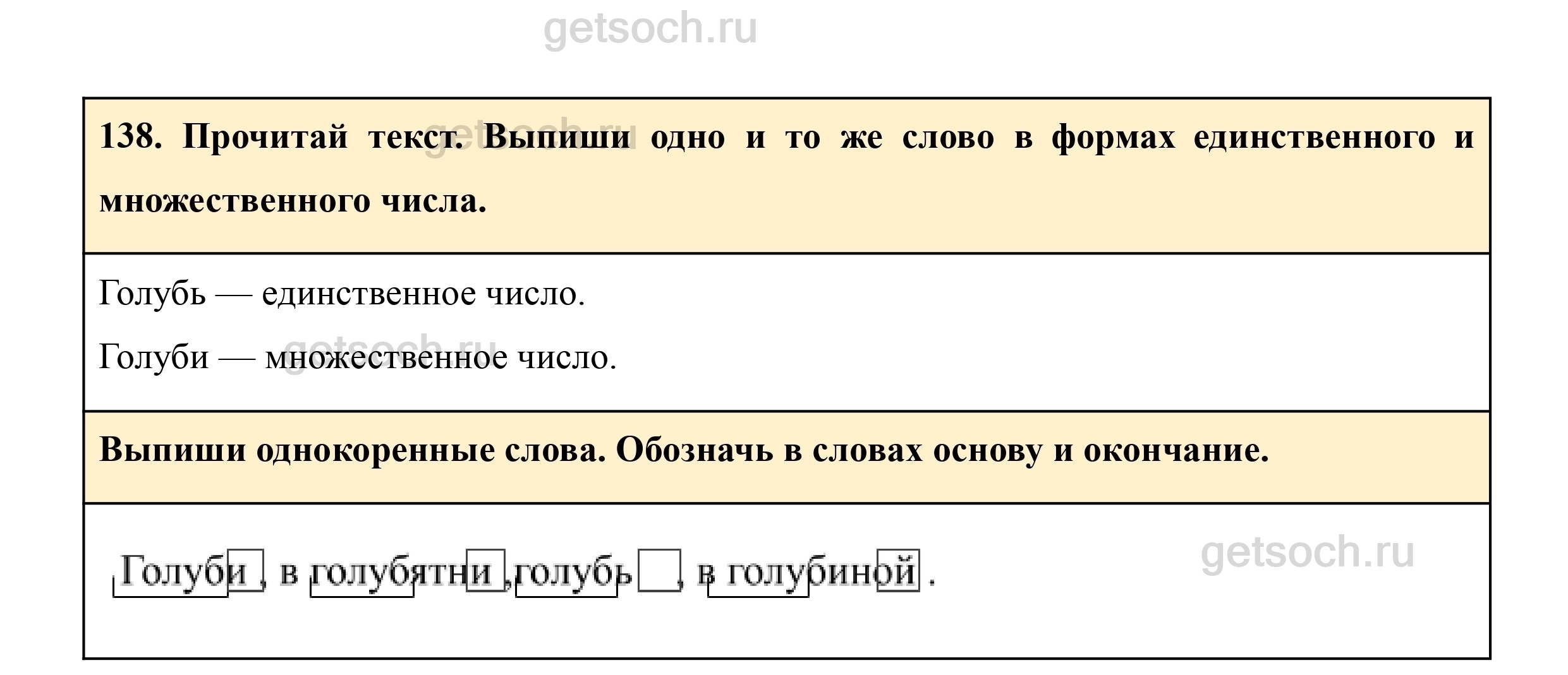 138. Прочитай текст. Выпиши одно и то же слово в формах единственного и множественного числа.