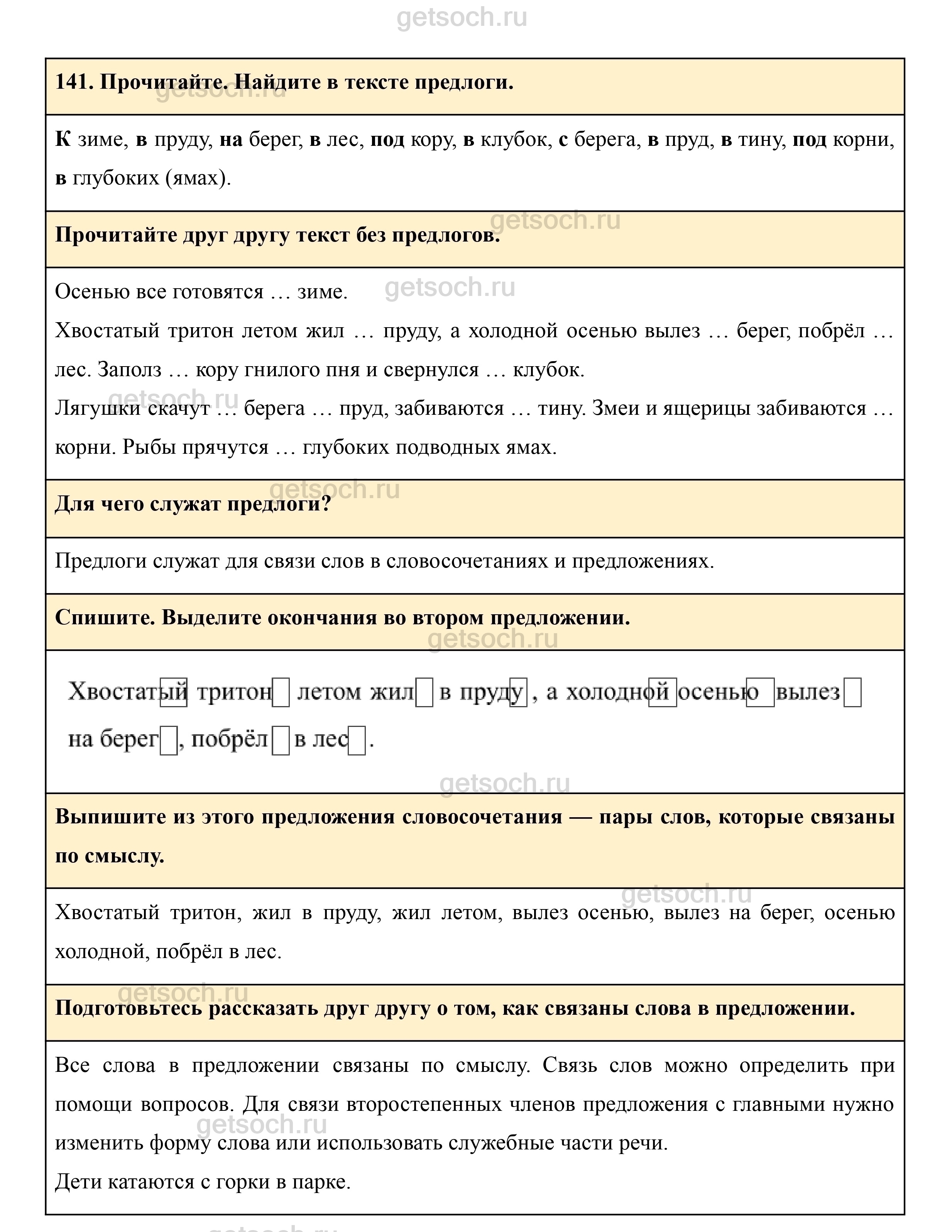 Рассмотрим ответы на Упражнение 141 из учебника по русскому языку для 3 класса Рамзаевой