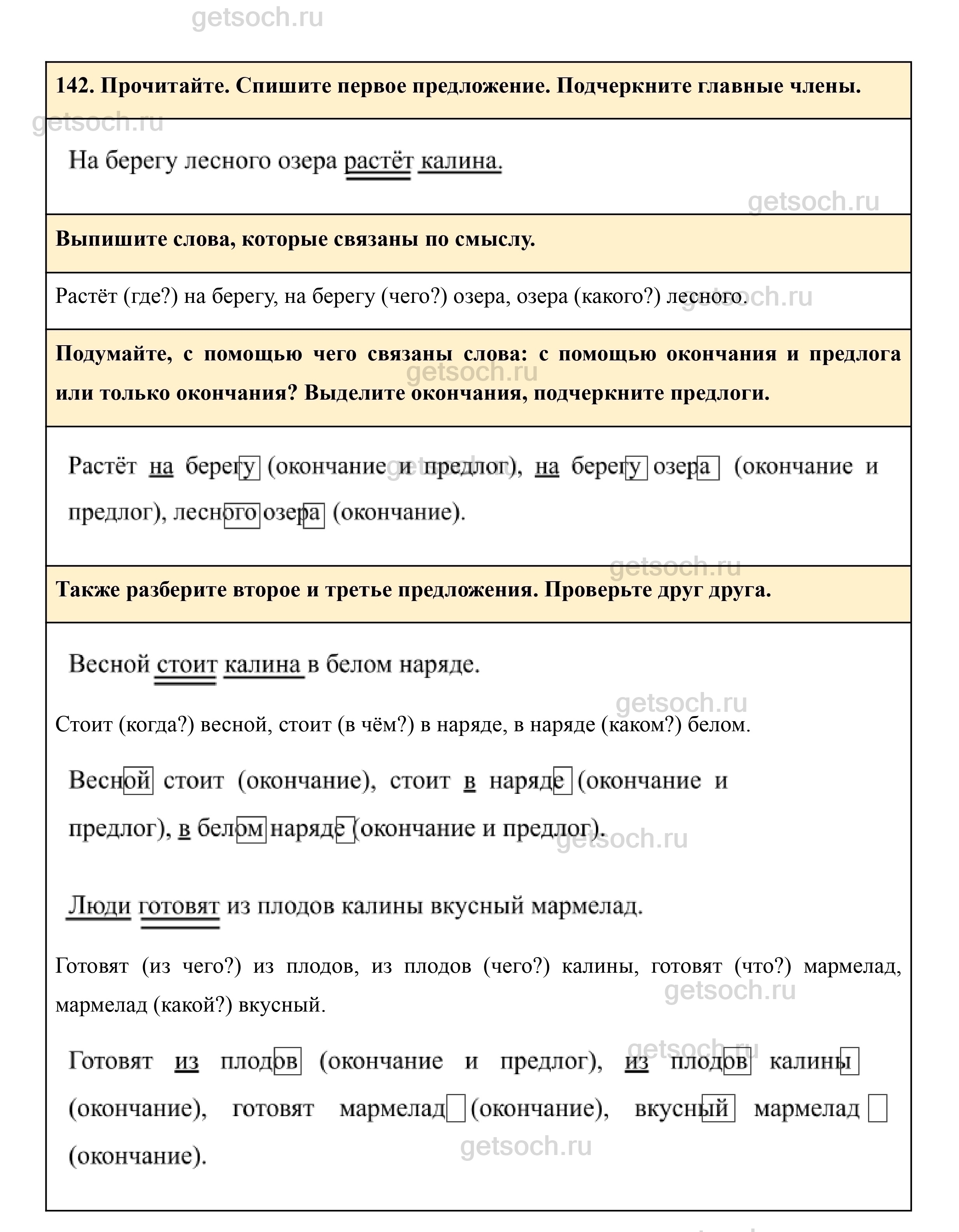 Рассмотрим ответы на Упражнение 142 из учебника по русскому языку для 3 класса Рамзаевой