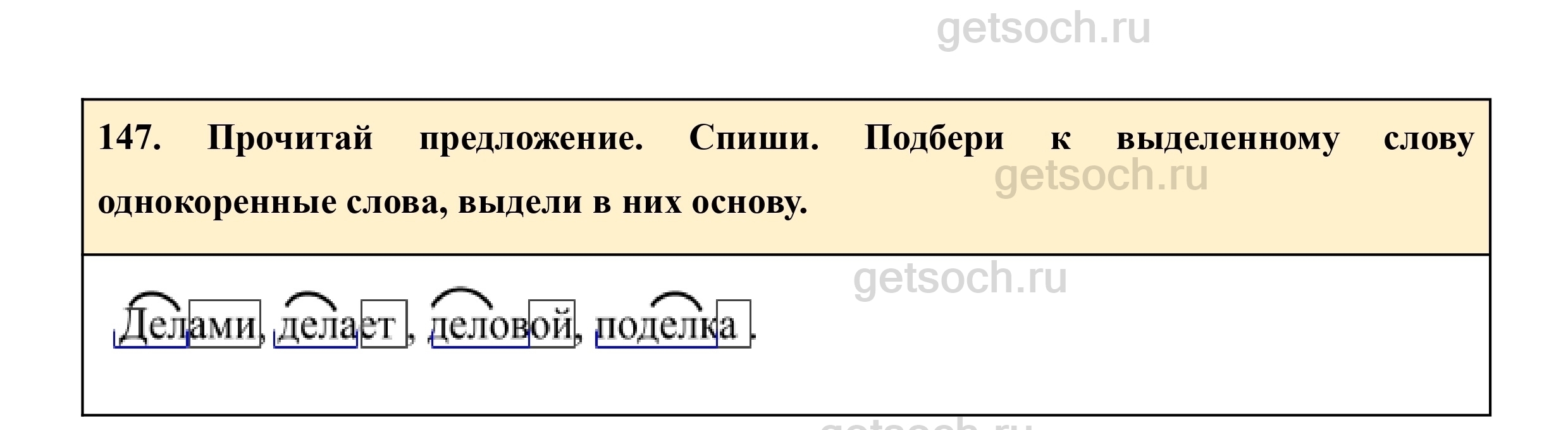 147. Прочитай предложение. Спиши. Подбери к выделенному слову однокоренные слова, выдели в них основу.