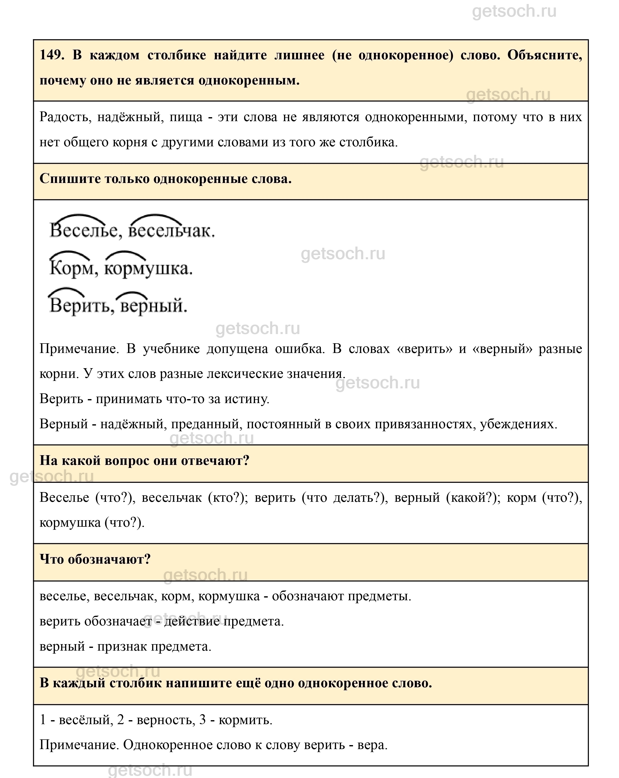 149. В каждом столбике найдите лишнее (не однокоренное) слово. Объясните, почему оно не является однокоренным.