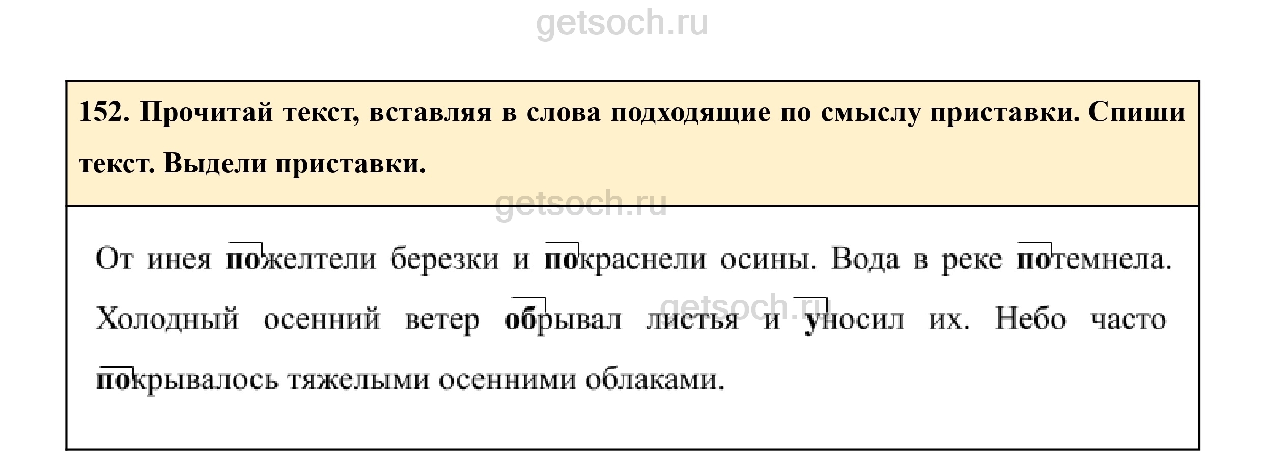 152. Прочитай текст, вставляя в слова подходящие по смыслу приставки. Спиши текст. Выдели приставки.
