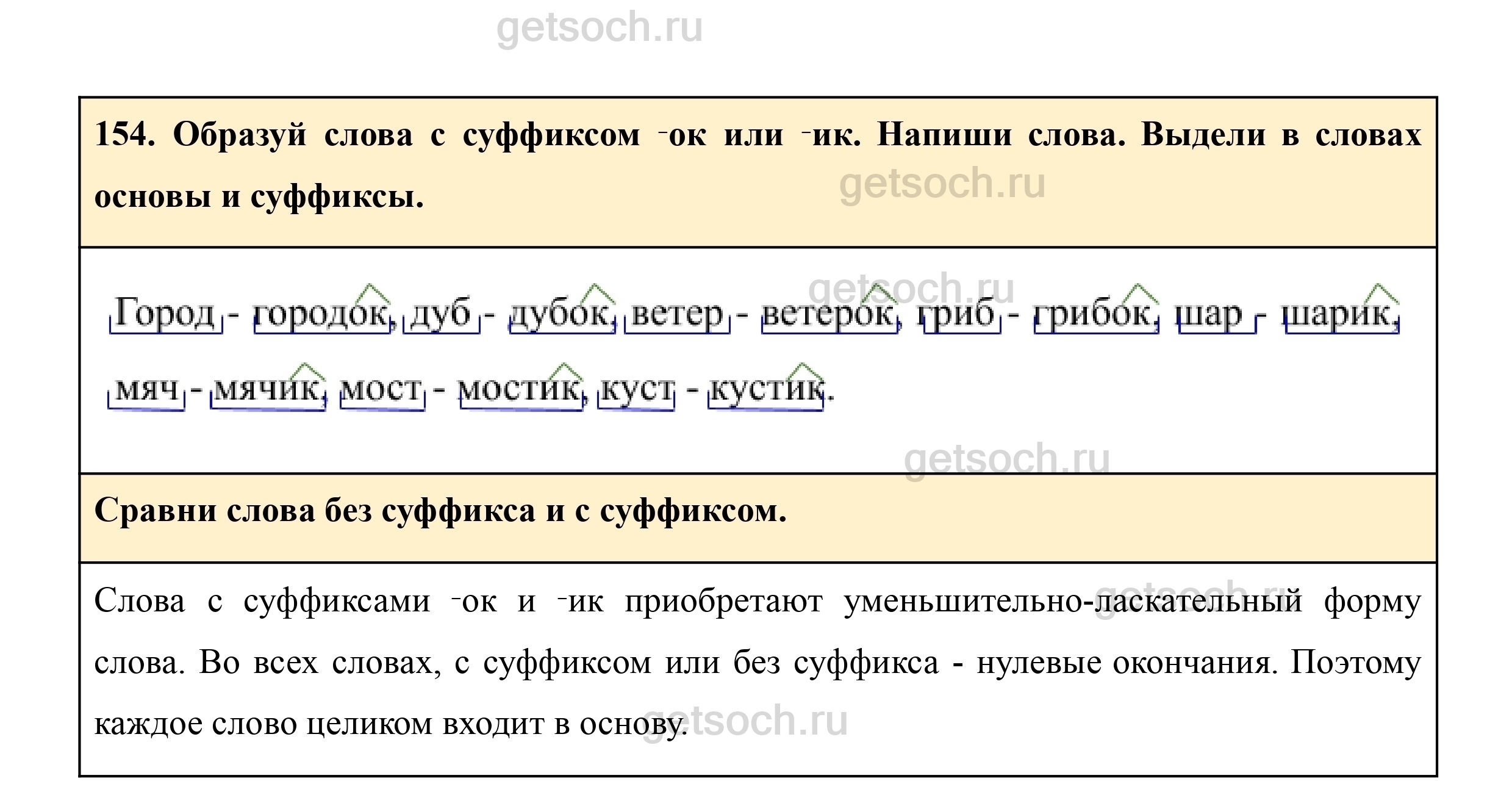154. Образуй слова с суффиксом ‑ок или ‑ик. Напиши слова. Выдели в словах основы и суффиксы.
