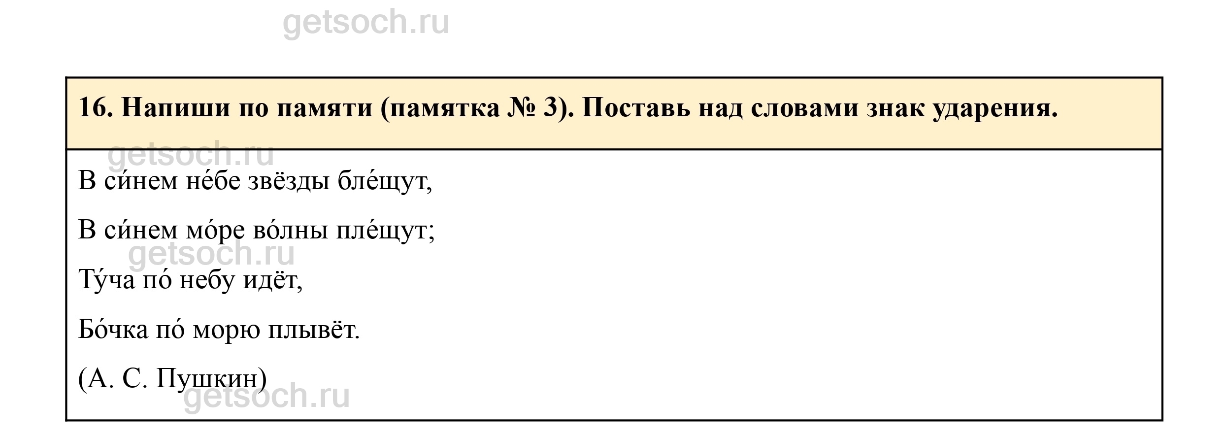 16. Напиши по памяти (памятка № 3). Поставь над словами знак ударения.