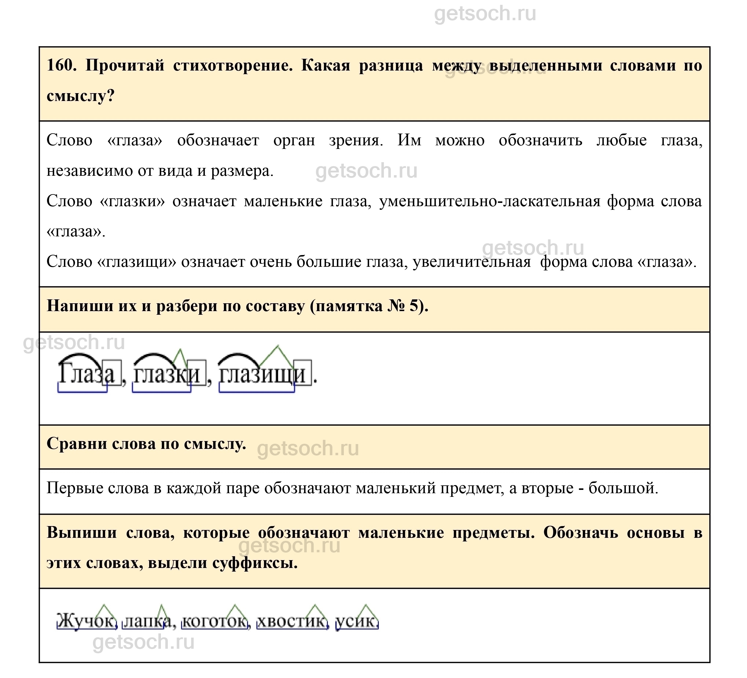 Рассмотрим ответы на Упражнение 160 из учебника по русскому языку для 3 класса Рамзаевой