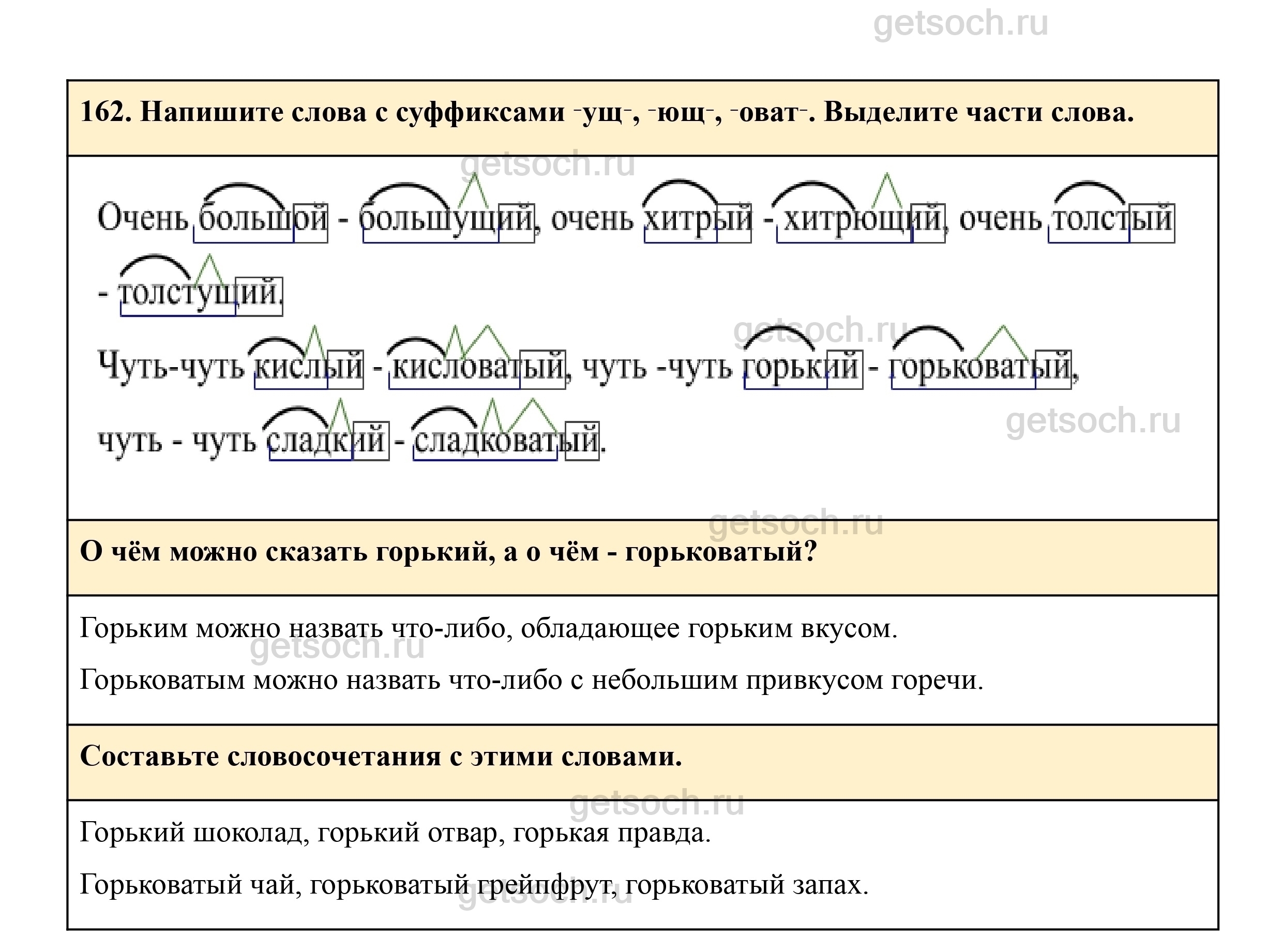 162. Напишите слова с суффиксами ‑ущ‑, ‑ющ‑, ‑оват‑. Выделите части слова.
