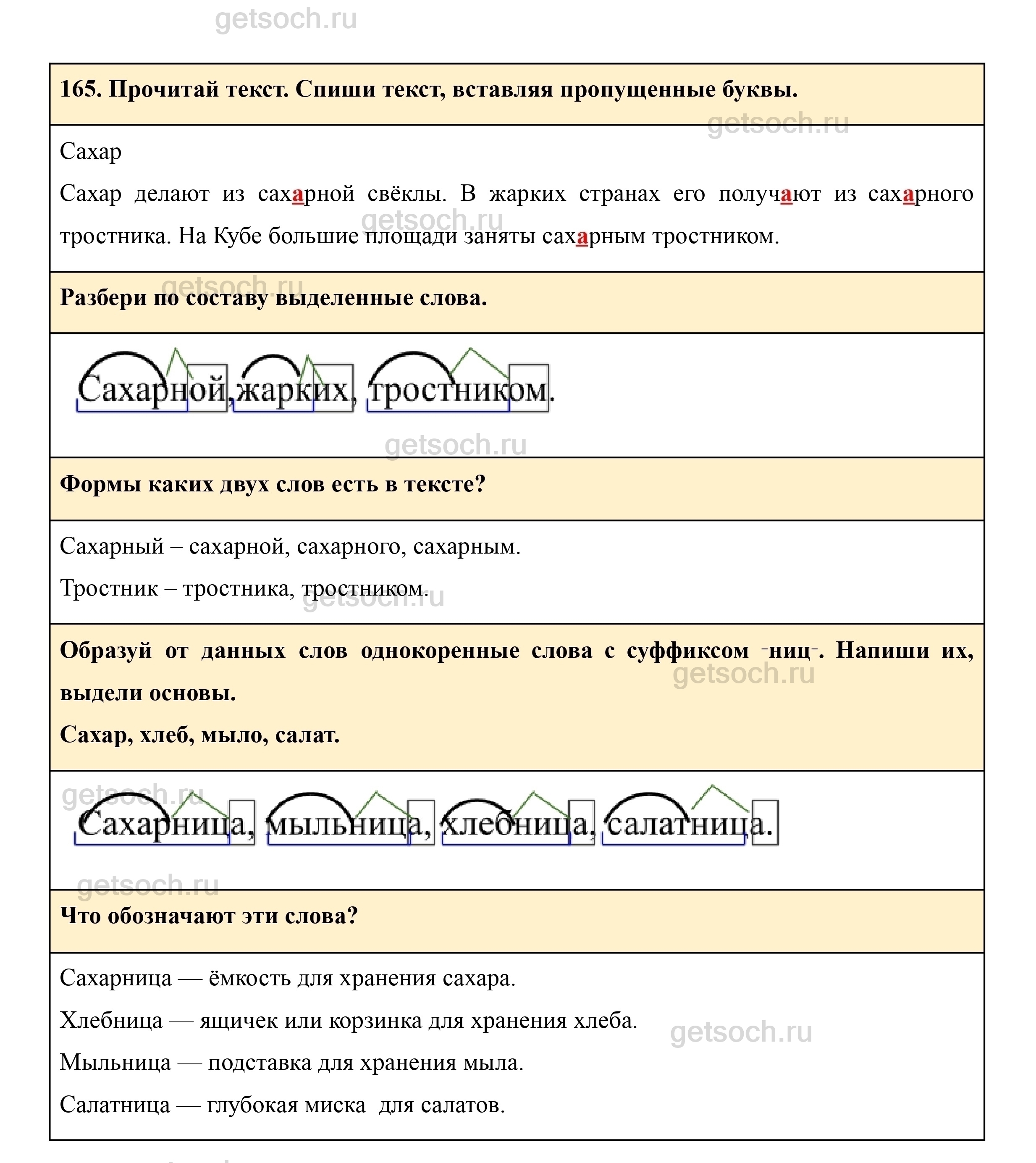 Рассмотрим ответы на Упражнение 165 из учебника по русскому языку для 3 класса Рамзаевой