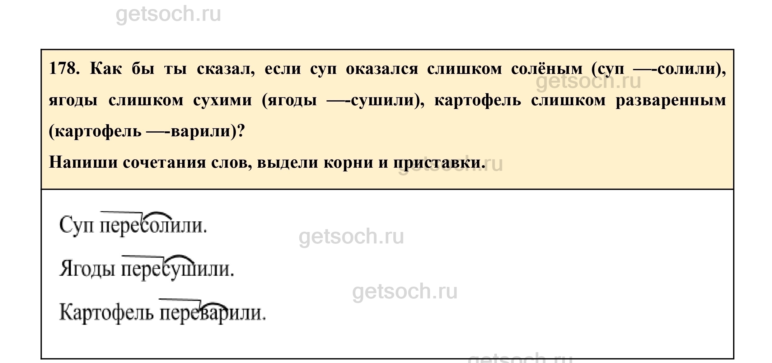 178. Как бы ты сказал, если суп оказался слишком солёным (суп —-солили), ягоды слишком сухими (ягоды —-сушили), картофель слишком разваренным (картофель —-варили)?