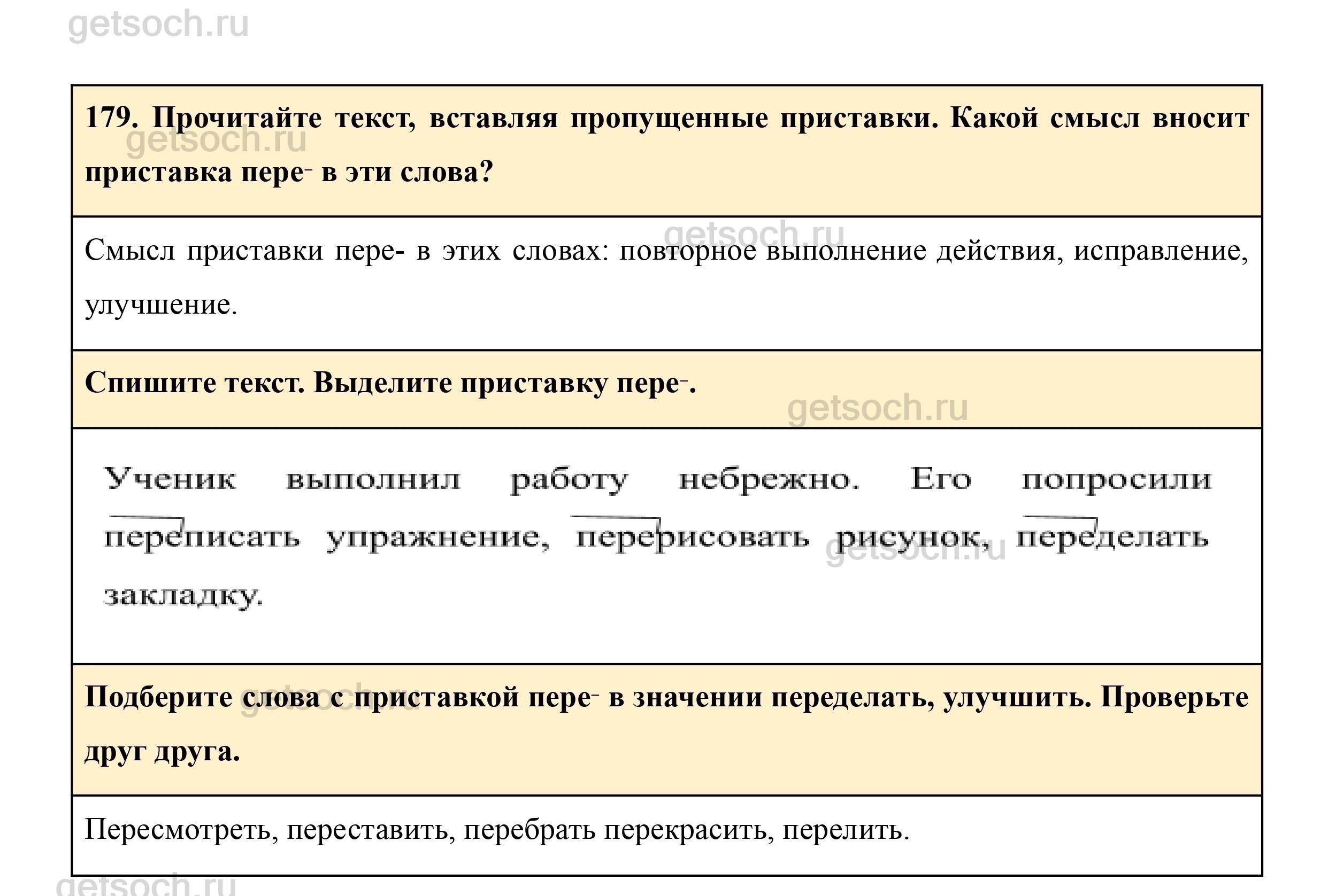 179. Прочитайте текст, вставляя пропущенные приставки. Какой смысл вносит приставка пере‑ в эти слова?