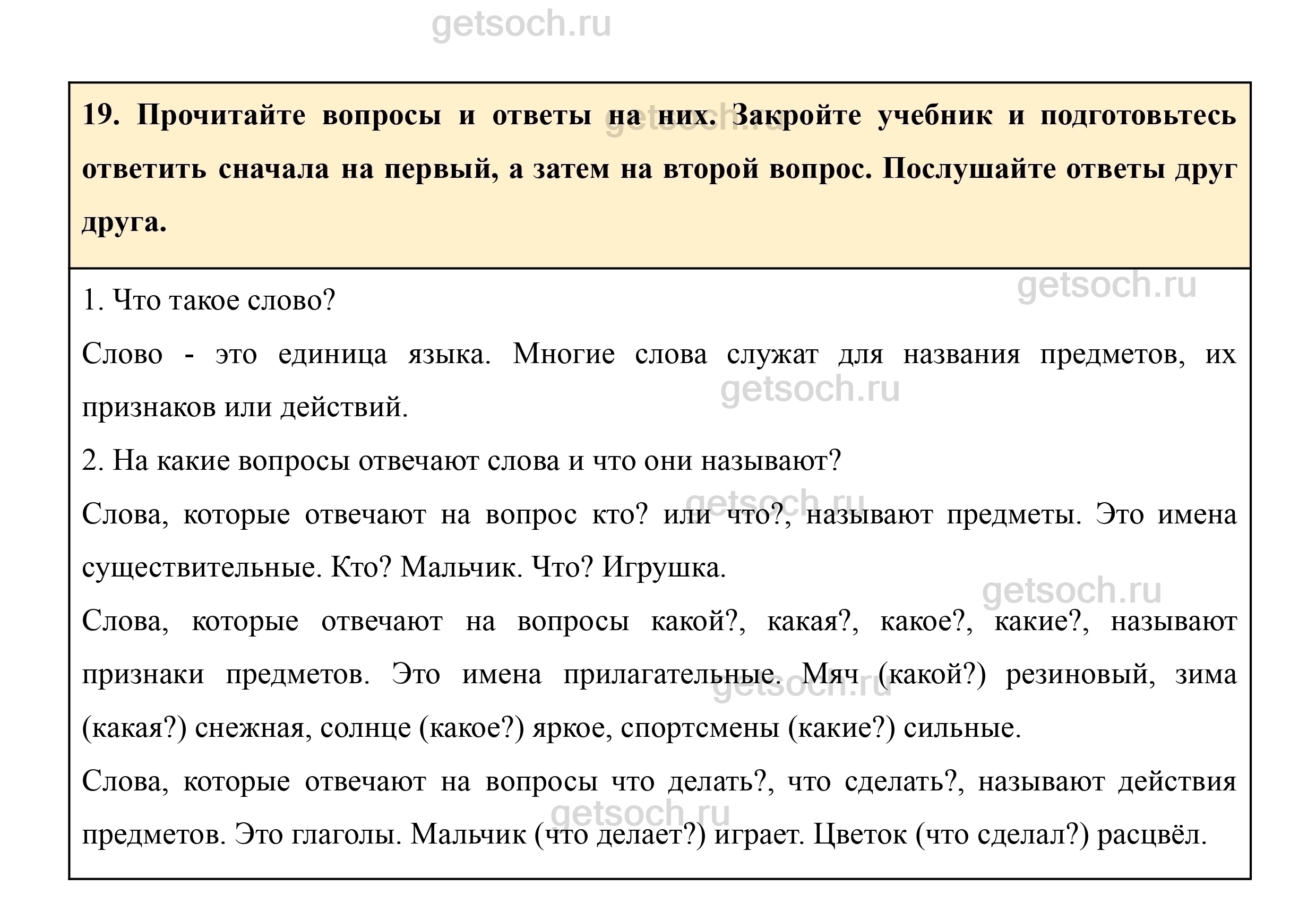 19. Прочитайте вопросы и ответы на них. Закройте учебник и подготовьтесь ответить сначала на первый, а затем на второй вопрос. Послушайте ответы друг друга.