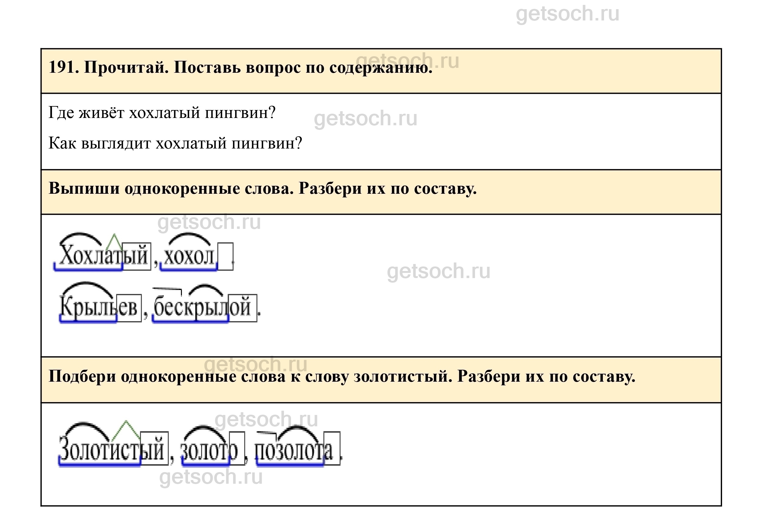 Рассмотрим ответы на Упражнение 191 из учебника по русскому языку для 3 класса Рамзаевой