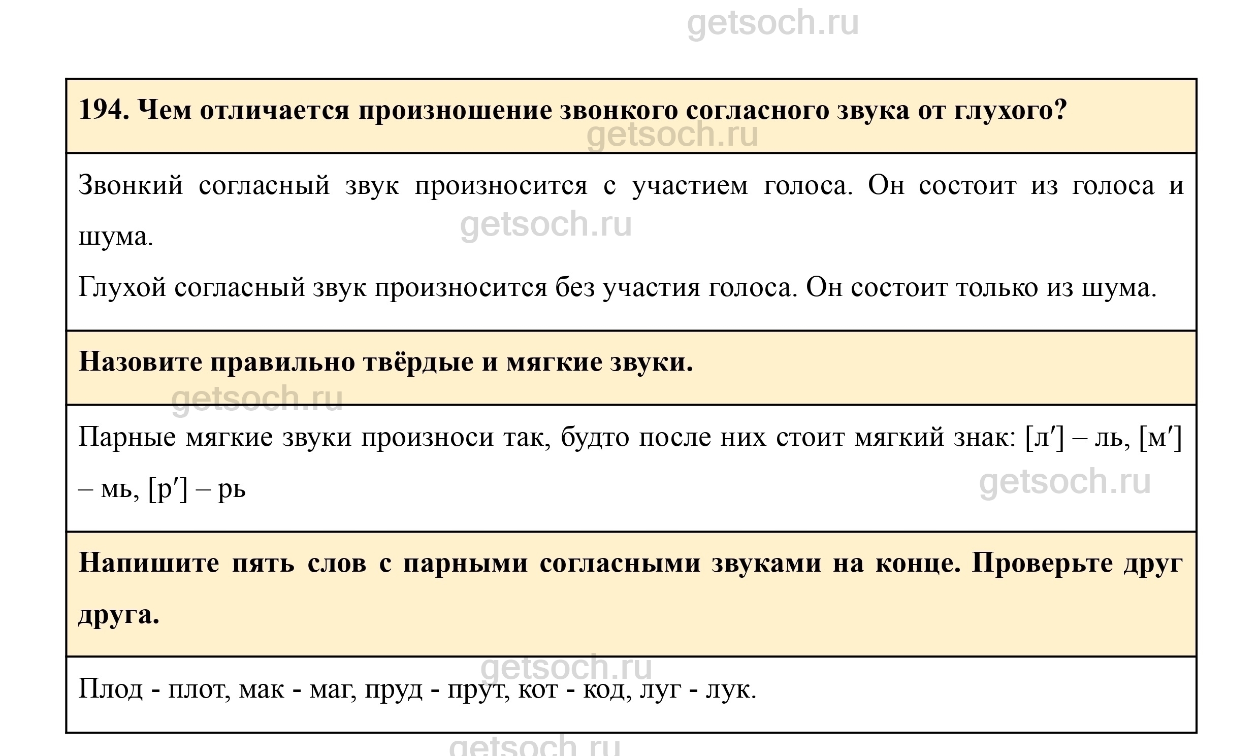 194. Чем отличается произношение звонкого согласного звука от глухого?