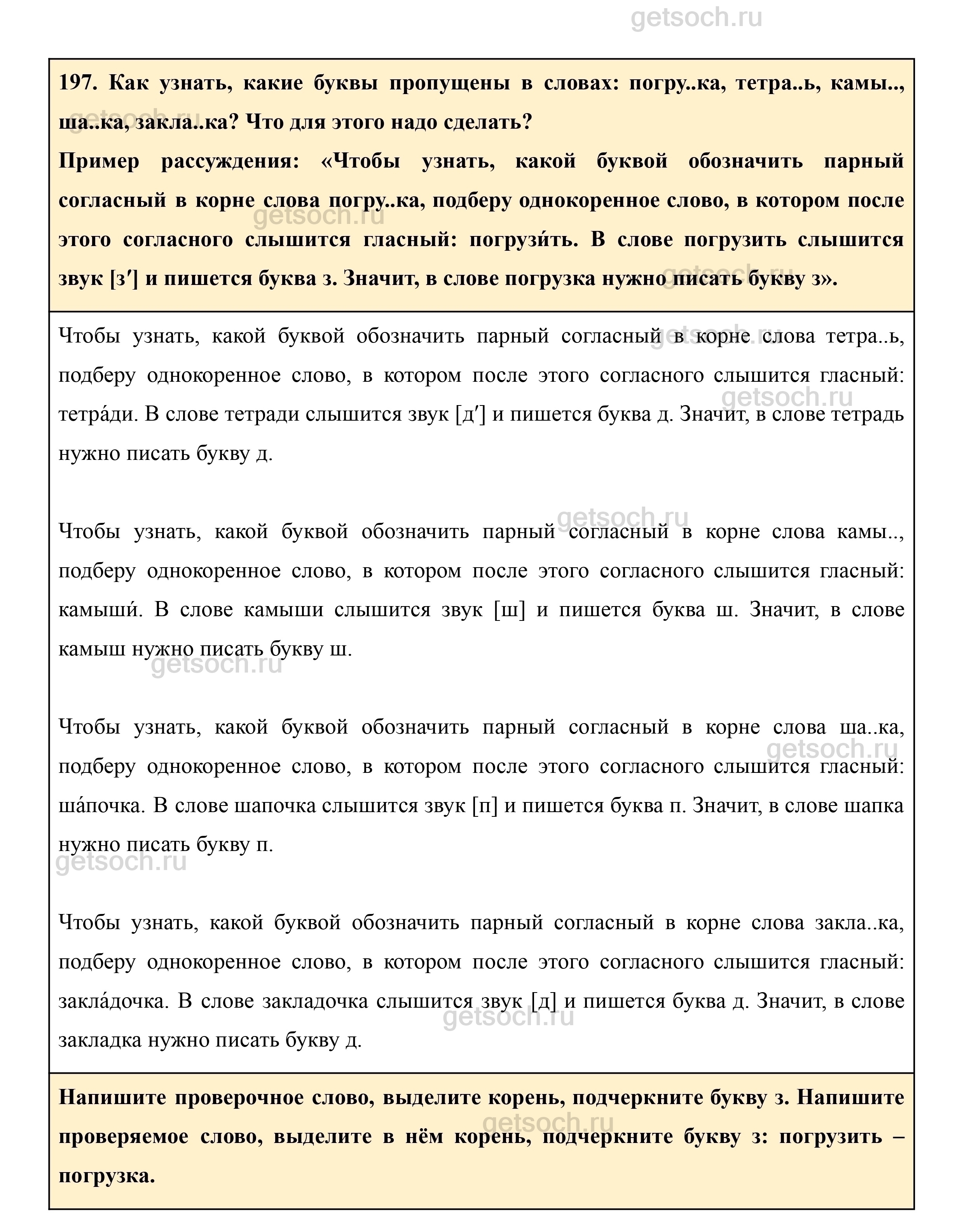197. Как узнать, какие буквы пропущены в словах: погру..ка, тетра..ь, камы.., ша..ка, закла..ка? Что для этого надо сделать?