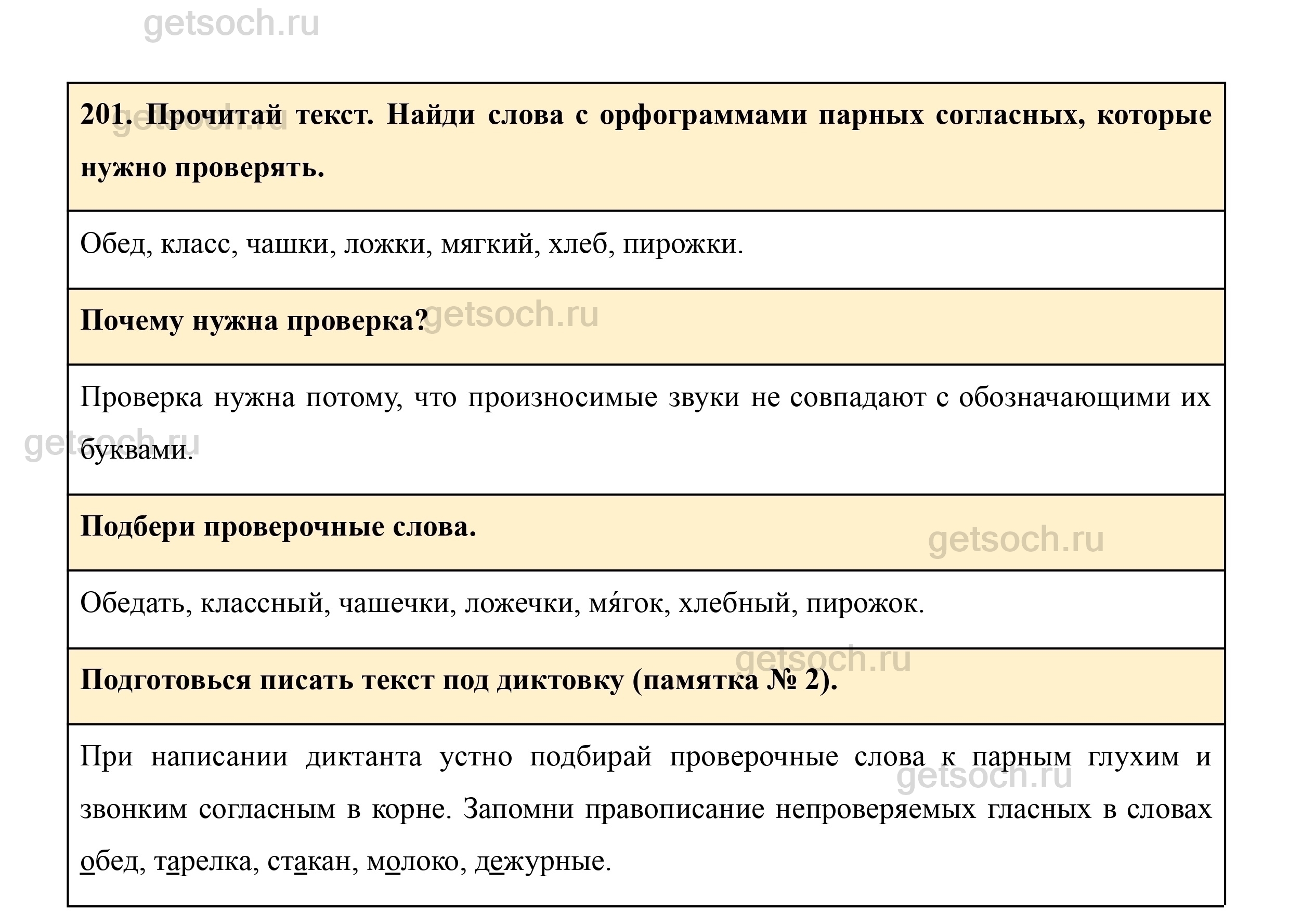 201. Прочитай текст. Найди слова с орфограммами парных согласных, которые нужно проверять.