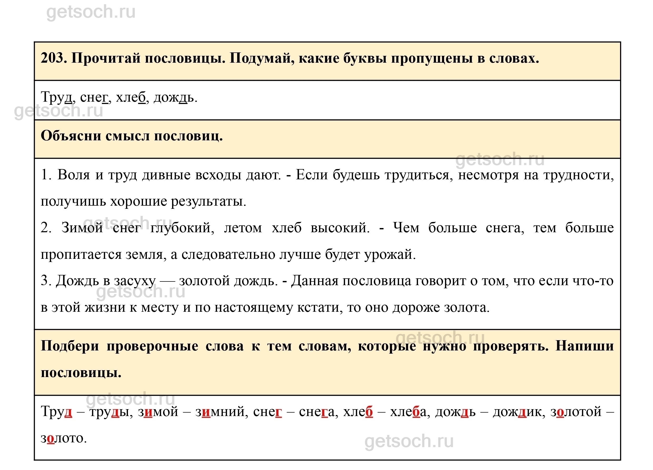 Рассмотрим ответы на Упражнение 203 из учебника по русскому языку для 3 класса Рамзаевой