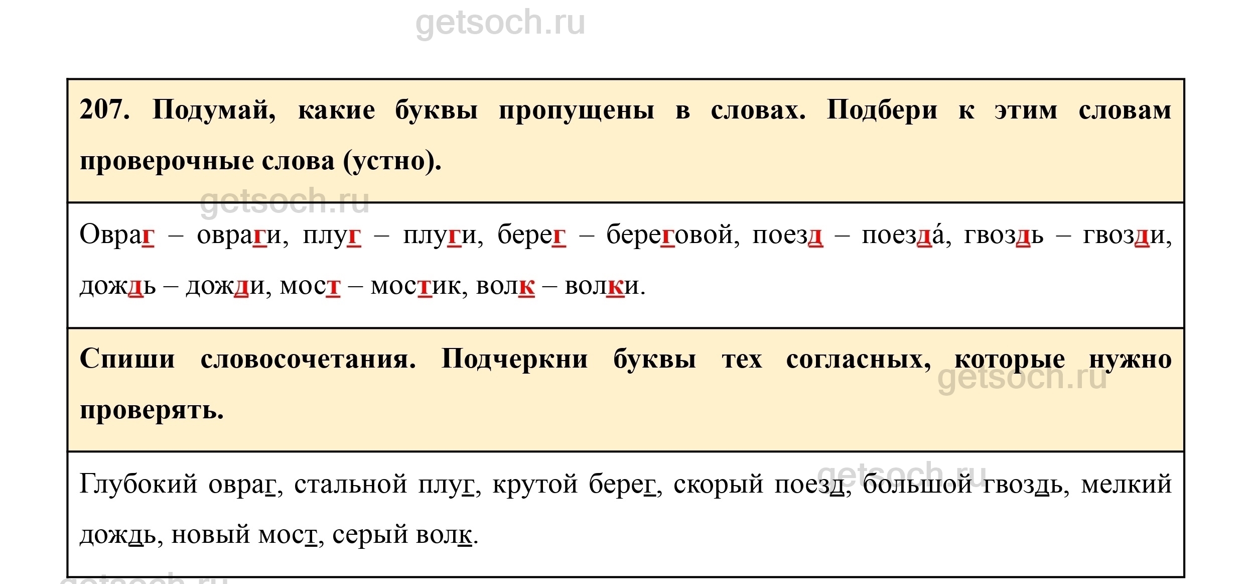 207. Подумай, какие буквы пропущены в словах. Подбери к этим словам проверочные слова (устно).