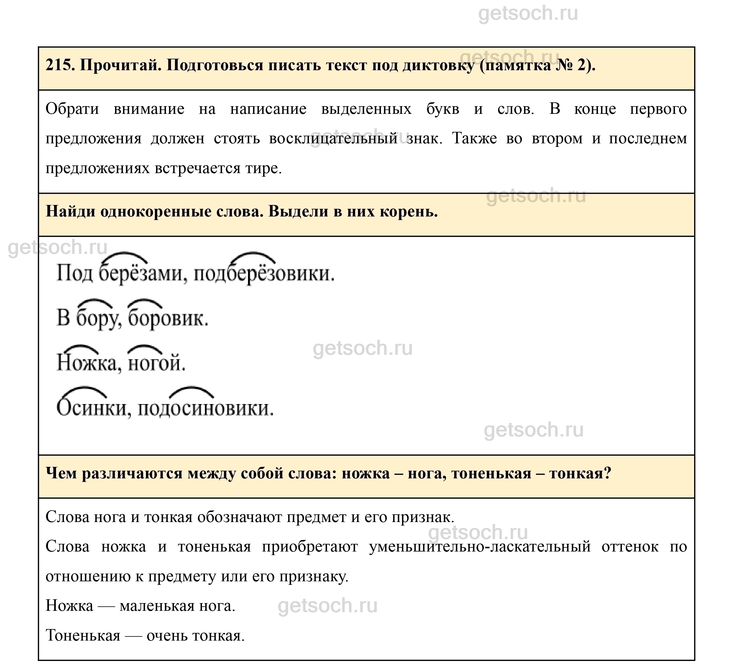 Рассмотрим ответы на Упражнение 215 из учебника по русскому языку для 3 класса Рамзаевой
