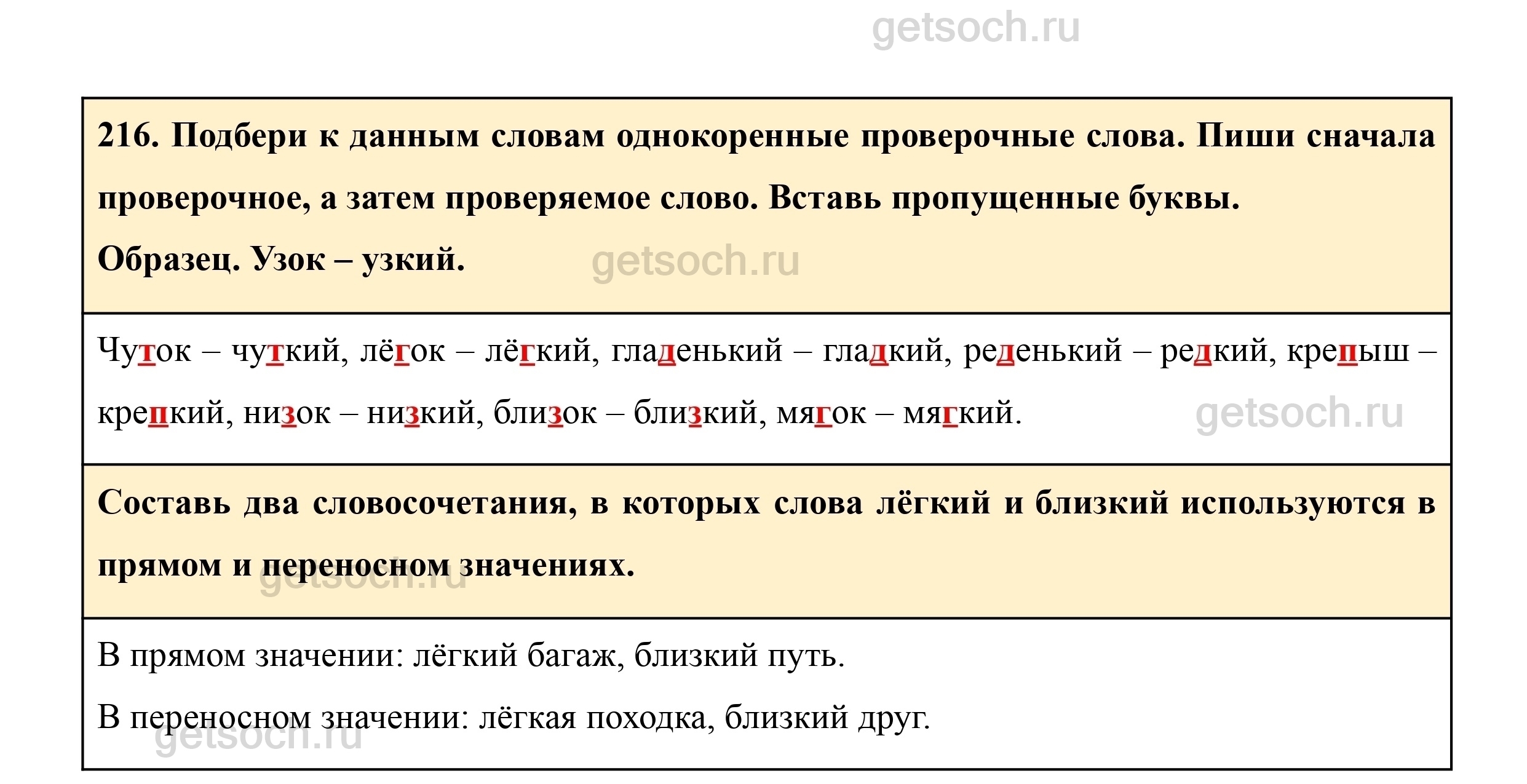 216. Подбери к данным словам однокоренные проверочные слова. Пиши сначала проверочное, а затем проверяемое слово. Вставь пропущенные буквы.