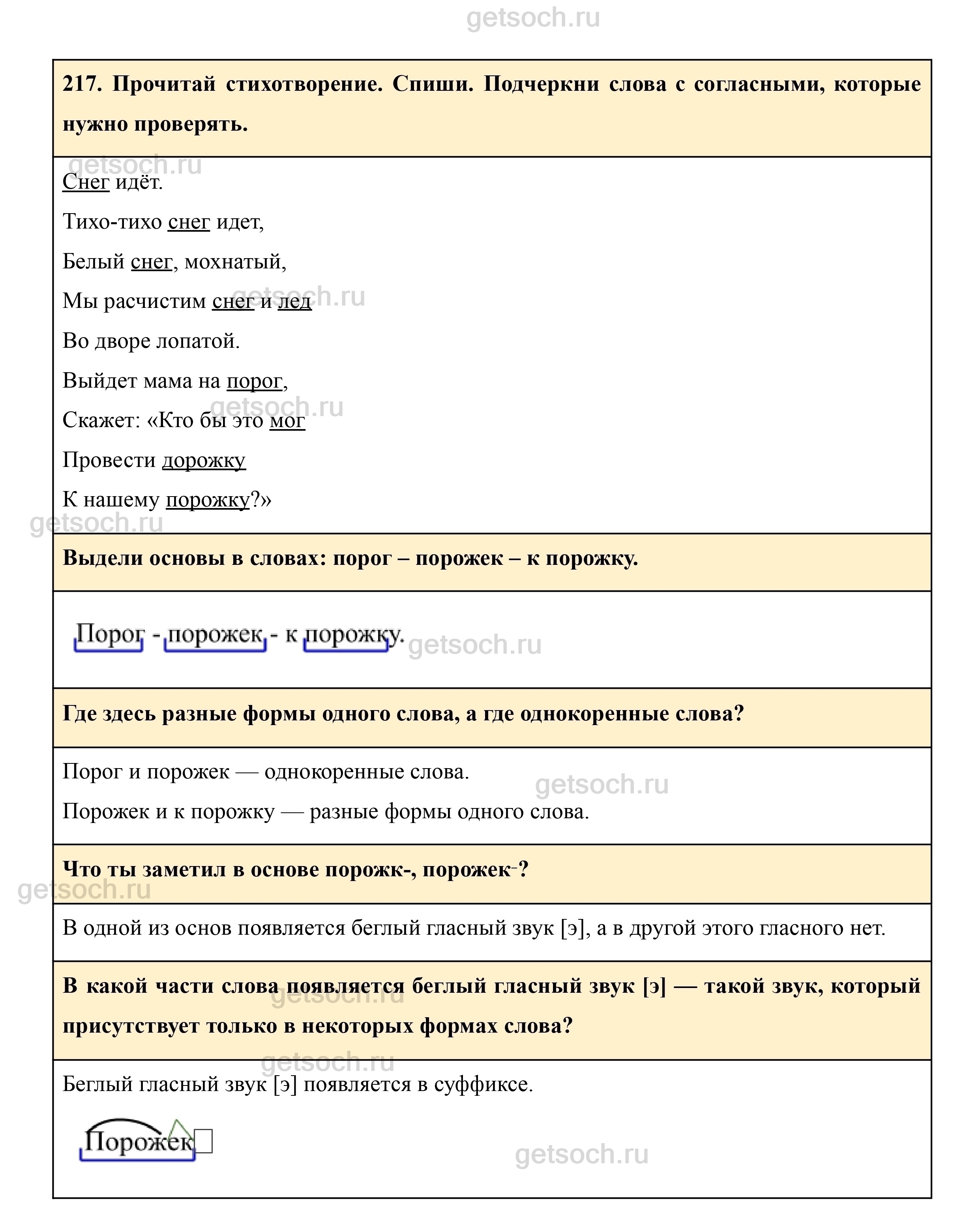 Рассмотрим ответы на Упражнение 217 из учебника по русскому языку для 3 класса Рамзаевой