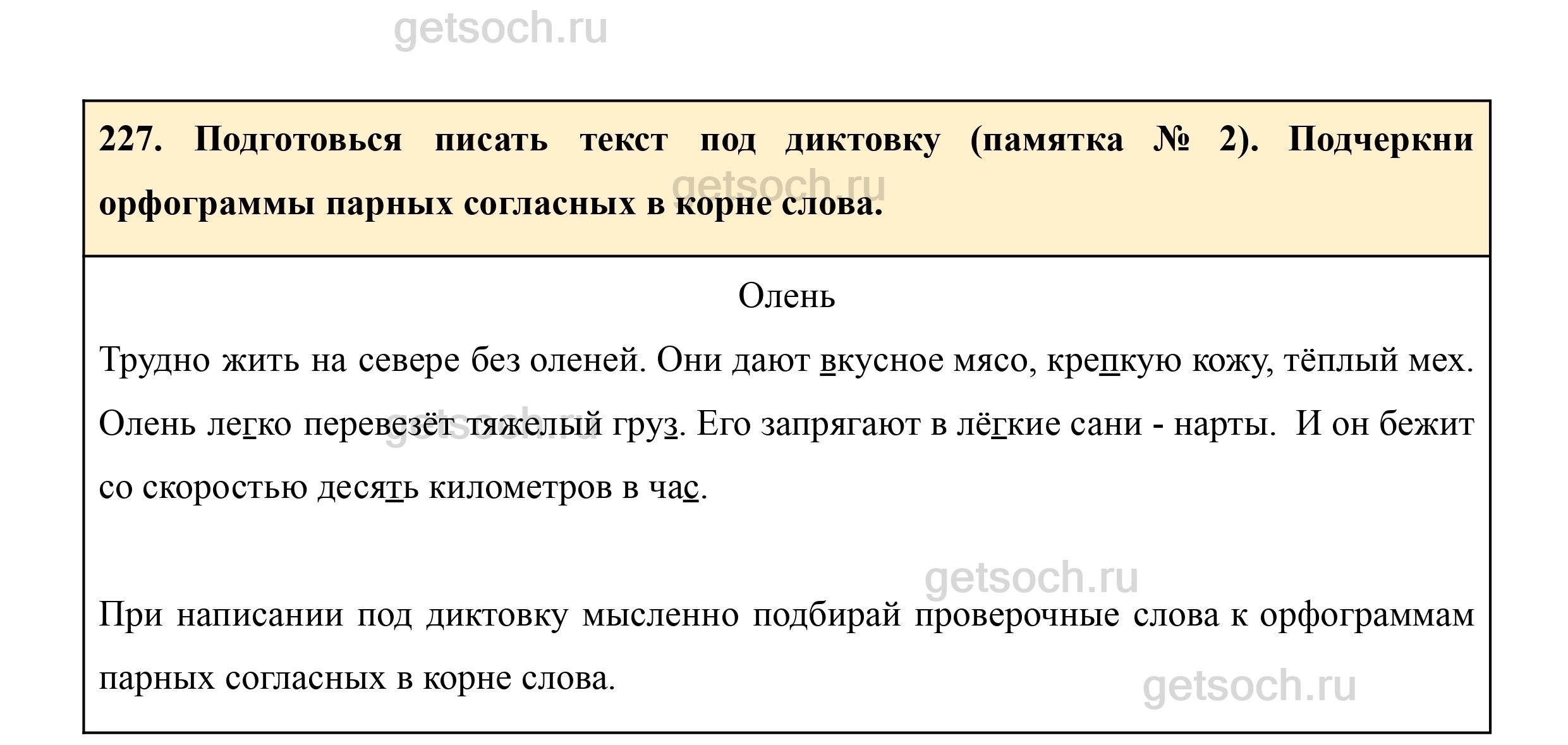 227. Подготовься писать текст под диктовку (памятка № 2). Подчеркни орфограммы парных согласных в корне слова.
