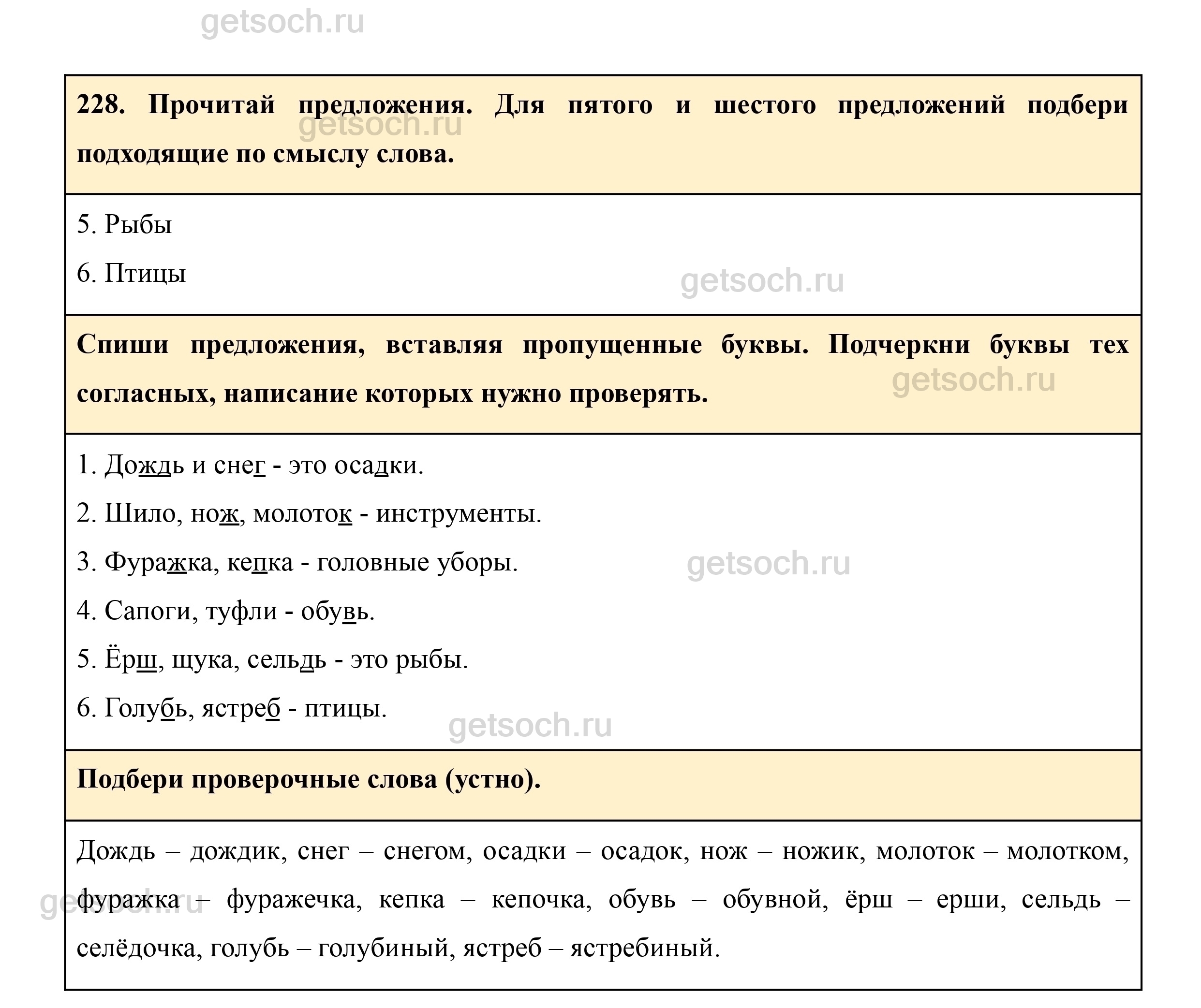 Рассмотрим ответы на Упражнение 228 из учебника по русскому языку для 3 класса Рамзаевой
